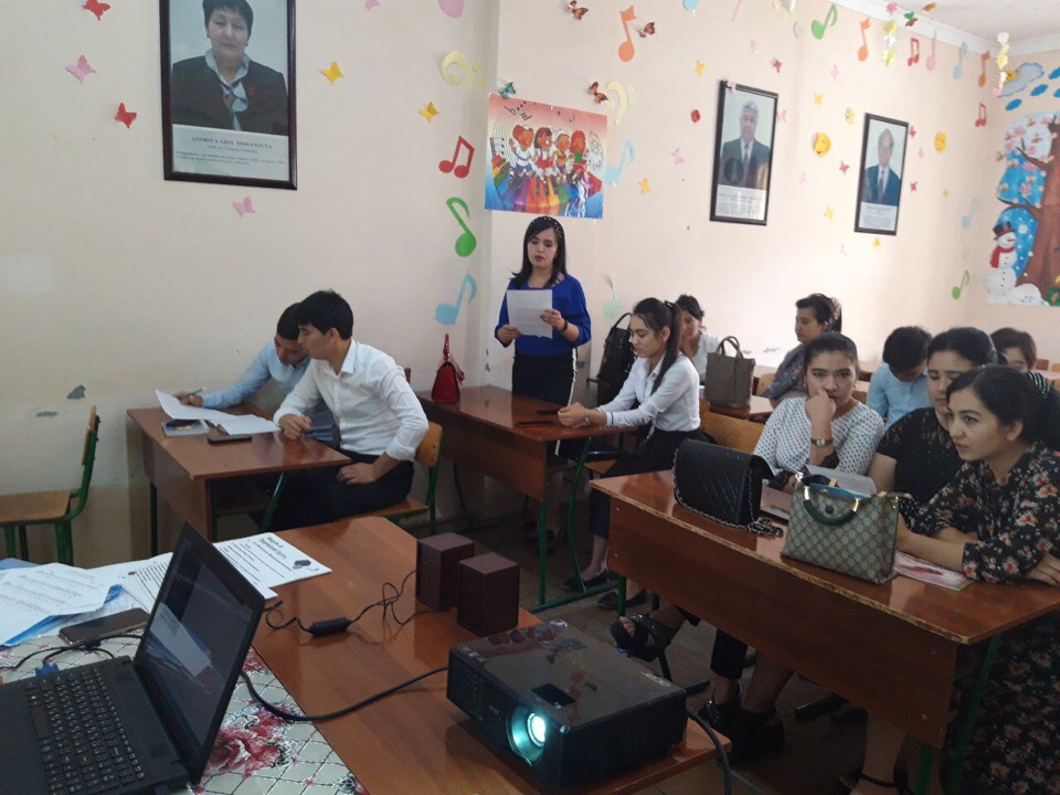 Студенты-музыканты организовали концерт, на котором прозвучали обработки узбекских народных песен и наигрышей, эстрадные песни. Студенты показали хороший уровень исполнения на народных узбекских инструментах: дутар, рубаб, доира, най.