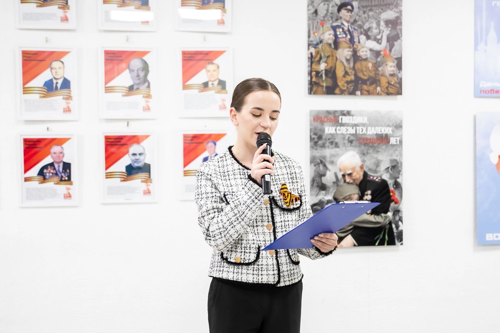Продолжается череда мероприятий в преддверии празднования 80-летия Великой Победы – в Белом зале Акмуллинского университета открылась фотовыставка «Память и наследие: портреты ветеранов».