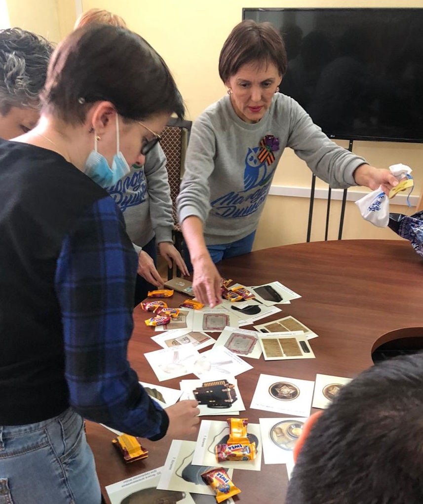 В рамках Года памяти и Славы, в рамках проведения полезной программы Окружного форума добровольцев Приволжского и Южного Федеральных округов «Добро на Юге» 15 сентября 2020 года, в Республиканском центре волонтерского движения и молодежных инициатив, студенческий волонтерский отряд «Палитра» Института педагогики БГПУ им. М. Акмуллы и команда «серебряных» волонтеров Уфы, под руководством доцента кафедры ТиМНО БГПУ им. М. Акмуллы Екатерины Савельевой, провели военно-историческое лото «Предметы личного пользования солдат и офицеров времен Великой Отечественной Войны 1941-1945 гг.» (на основе экспонатов Республиканского музея Боевой Славы) для участников форума. Участники мероприятия активно участвовали в игре, быстро находили пары карточек, с интересом угадывали предметы на ощупь, отгадывали загадки. По завершению мероприятия участники поблагодарили организаторов мероприятия и выразили надежду на дальнейшие встречи!