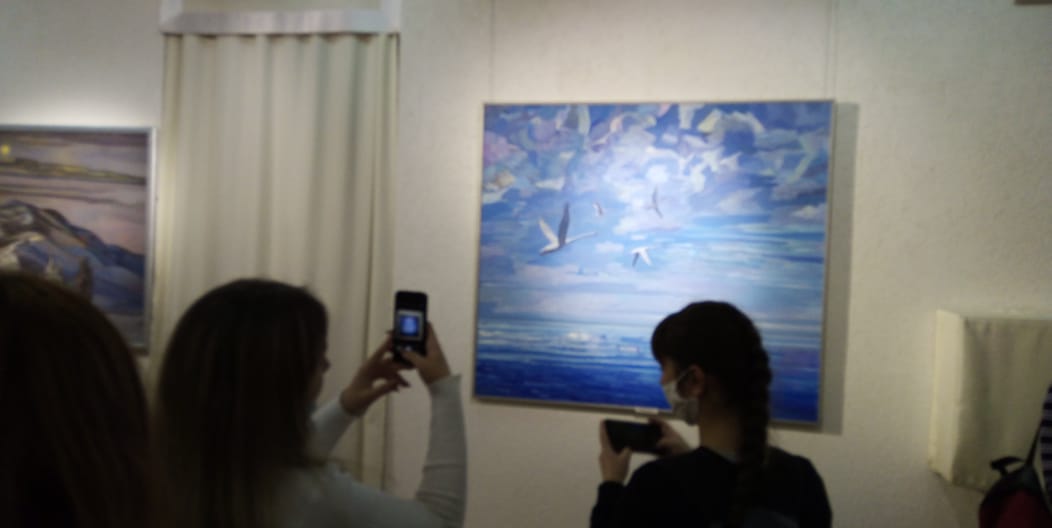 Хатип Фазылов поделился воспоминаниями из детства о родной деревне Янаулово Абзелиловского района Башкортостана, рассказал о первой встрече со своим наставником, крупнейшим художником, действительным членом Академии художеств России Ахматом Лутфуллиным, оказавшим значительное влияние на становление его творчества, формирование духовного мира. Мастер рассказал первокурсникам о картинах, представленных в экспозиции: о пейзажах, о древе жизни, национальных традициях, легендах, сэсэнах, героях-башкирах времен гражданской и ВОВ, а также о женском образе  матери - нежном, глубоком и близком его сердцу…