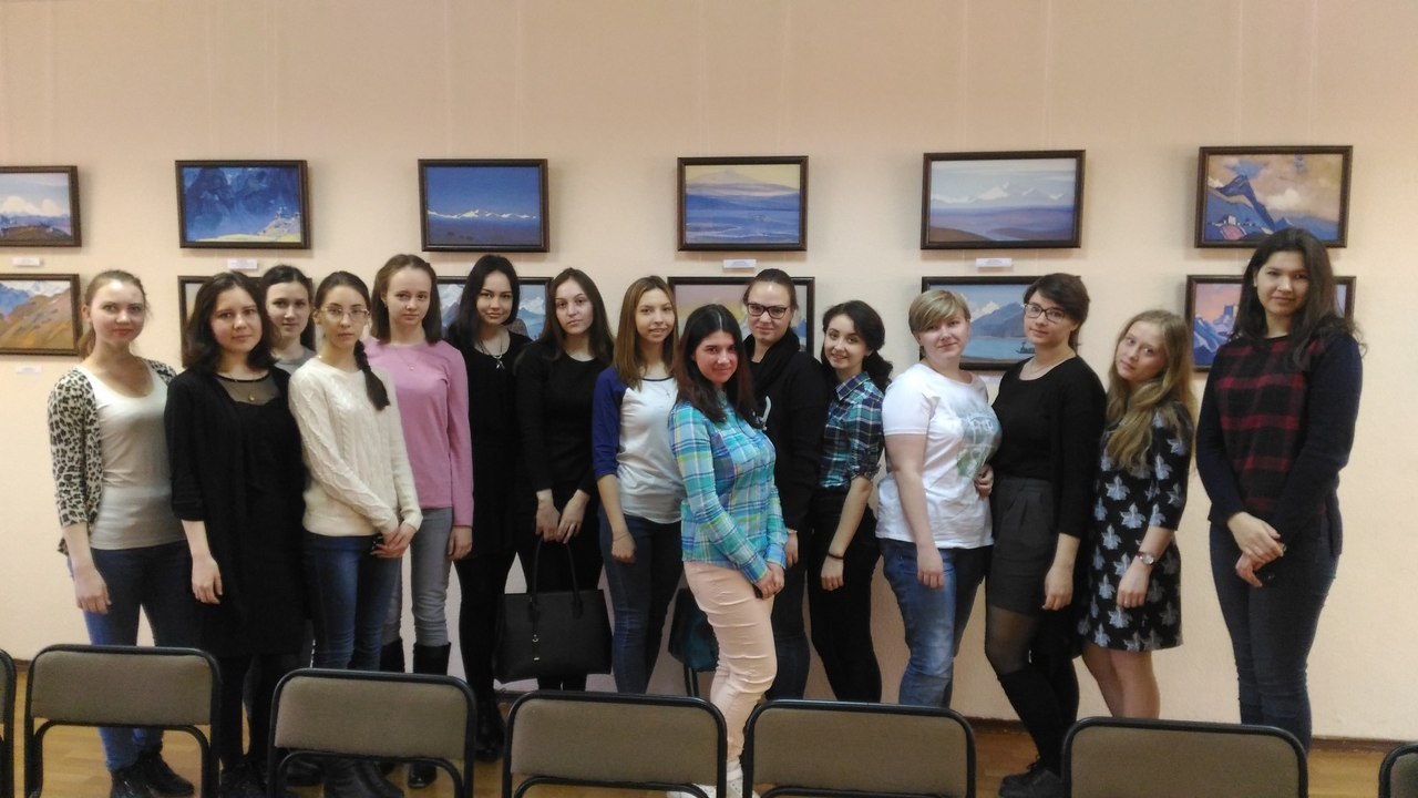 Гульгена Бакиева (1 курс, направление «Начальное образование»): Мы побывали в библиотеке на выставке копий картин Н.Рериха и тибетского ламы Тензинга Норбу. Работы очень впечатлили. На полотнах русского художника Николая Рериха изображены заснеженные вершины Тибета, высокогорные монастыри и люди, жившие несколько веков назад. Рядом с философскими работами Рериха — произведения современного тибетского мастера Ламы Тензинга Норбу с теми же достопримечательностями. Оба художника очень интересные. От картин просто невозможно оторваться! Спасибо за такую прекрасную экскурсию!