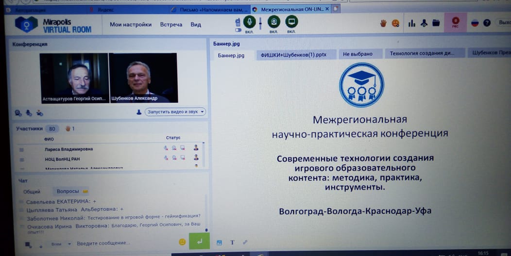 23 октября 2020 года была проведена межрегиональная on-line конференции «Современные технологии создания игрового образовательного контента: методика, практика, инструменты». Организаторы конференции: