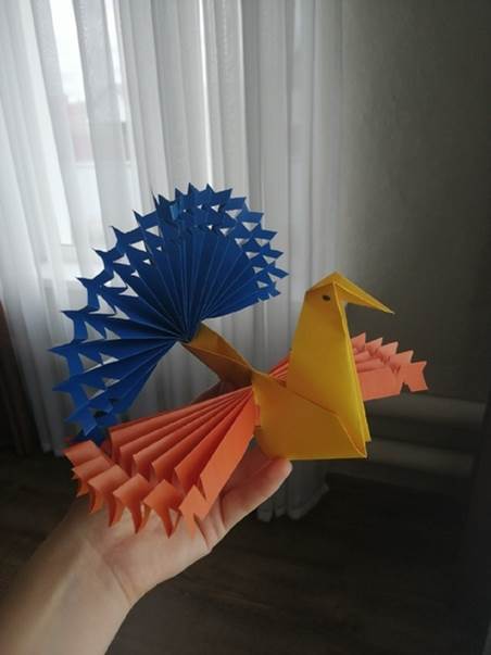 28 ноября 2020 года для воспитанников семейного центра  «Вместе»  волонтеры отряда «Палитра», под рук. доц. кафедры ТиМНО, «серебряного» волонтера Башкортостана Екатерины Савельевой, провели творческое занятие «Птица счастья» в дистанционном режиме. Волонтеры – студенты 1 курса направления «Начальное образование» Диана Ибатуллина, Наталья Лебедева, Алёна Орлова, с помощью презентации, познакомили девочек с птицей-красавицей с пышным  веерообразным хвостом и крыльями, которая смотрится   как лучезарное солнце и приносит счастье, добро, здоровье и научили в технике оригами  складывать поделку.