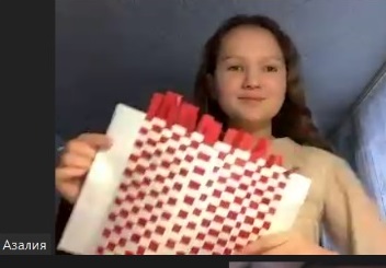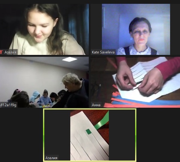 12 декабря 2020 года для воспитанников семейного центра  «Вместе»  волонтеры отряда «Палитра» – студенты 1 курса направления «Начальное образование» Азалия Хисамутдинова, Анна Демченко, под рук. доц. кафедры ТиМНО, «серебряного» волонтера Башкортостана Екатерины Савельевой, провели творческое занятие «Плетение ковриков» в дистанционном режиме. Большую помощь в проведении занятия оказала воспитатель центра Елена Васильевна Иванова.