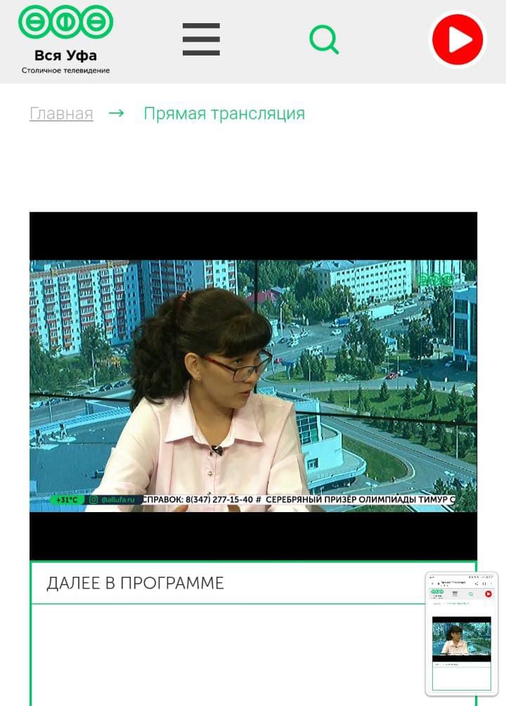 3 августа 2021 года в прямом эфире на телеканале «Вся Уфа» выступила к.п.н.,старший преподаватель кафедры теорий и методик начального образования Института педагогики Гульдар Фанисовна Ибрагимова .