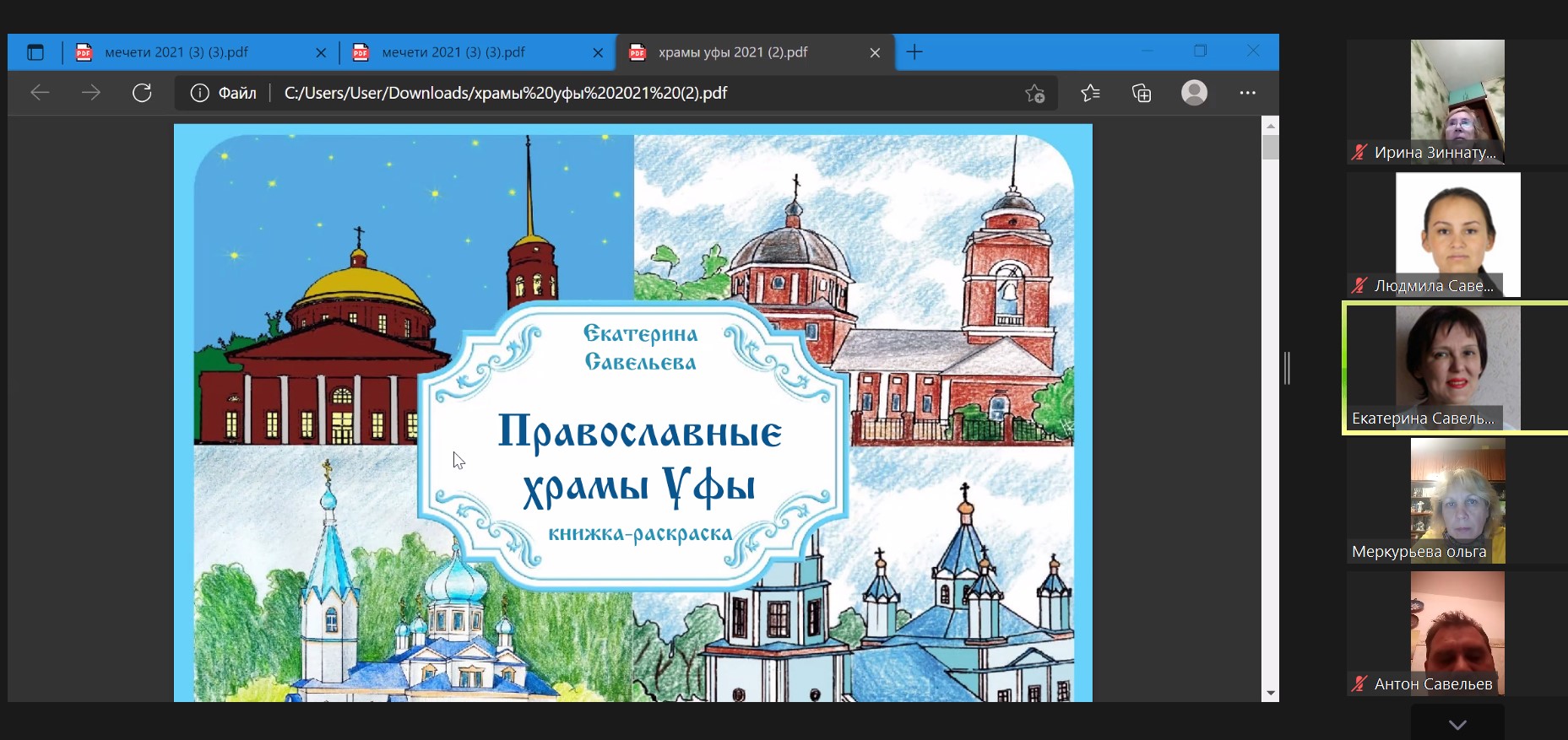В сентябре 2021 года началась реализация проекта "Книжки-раскраски «Храмы и мечети Уфы – детям», разработанный в АНО центр социального обслуживания населения «Соцфактор» (руководитель проекта - директор Р.З. Юлбаев, куратор проекта - к.п.н., доцент кафедры теорий и методик начального образования БГПУ им. М Акмуллы, «серебряный» волонтер Башкортостана Е,А. Савельева).