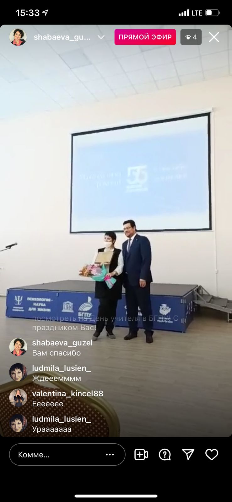 Также состоялась награждение сотрудников университета.  Поздравляем наших преподавателей Института педагогики! Почетной грамотой Министерства образования и науки РБ награждена  к.п.н., доцент кафедры дошкольной педагогики и психологии Гузель Шабаева! Также Гузель Шабаева стала лучшей в конкурсе Преподаватель года" в  номинации «Доцент года»!