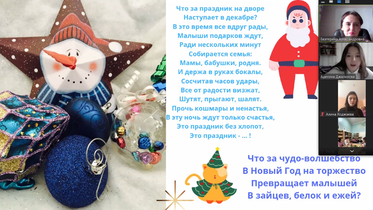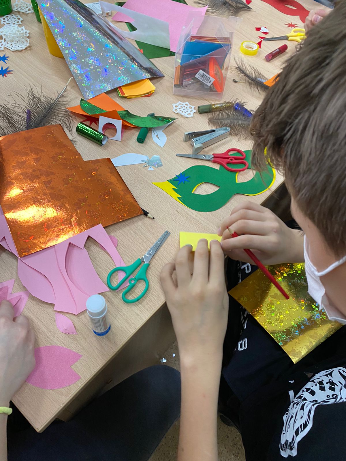 22 декабря 2021 г. для маленьких пациентов Республиканской клинической психиатрической больницы волонтеры отряда «Палитра», студенты 1 курса направления «Начальное образование» БГПУ им. М. Акмуллы Аделина Джалилова и Алина Ходжаева, под рук. доцента кафедры ТиМНО, руководителя студенческого волонтерского отряда «Палитра», «серебряного» волонтера Екатерины Савельевой, провели творческое занятие онлайн «Новогодние маски». Волонтеры с помощью презентации познакомили участников мероприятия с историей появления масок и изготовили маски для новогоднего праздника, даже с применением страусиных перьев!