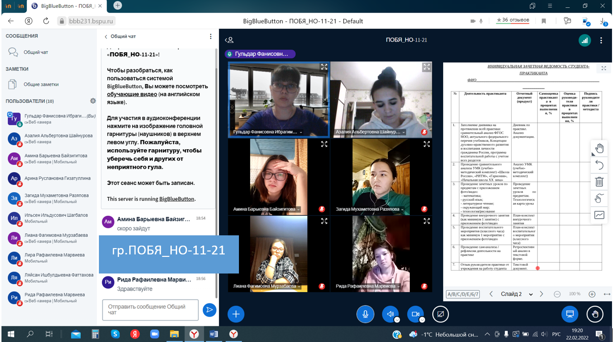22 февраля 2022 г. прошел день учебной ознакомительной (рассредоточенной) практики  у студентов 1 курса по направлению 44.03.05 Педагогическое образование (с двумя профилями подготовки), направленность (профиль) Родной (башкирский) язык, литература и начальное образование. База практики - МБОУ "Школа № 8 имени Ивана Петровича Хатунцева" город Уфа.  Совместно с руководителем практики (к.п.н., доц. кафедры ТиМНО Г.Ф. Ибрагимова) были проанализированы особенности выполнения заданий по анализу Федерального государственного образовательного стандарта начального общего образования, актуального федерального перечня учебников, учебно-методических комплектов и т.д.