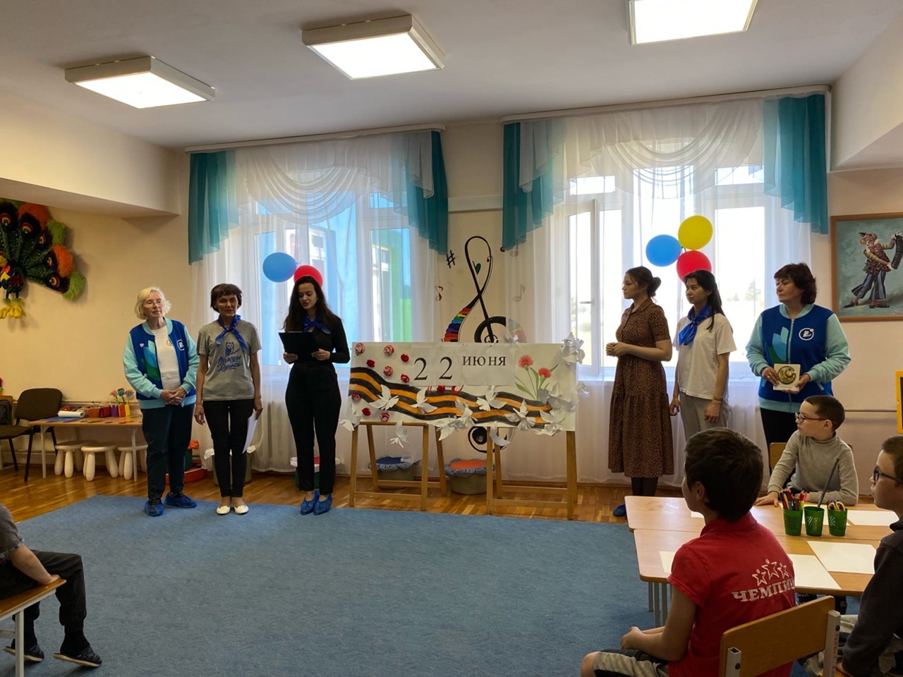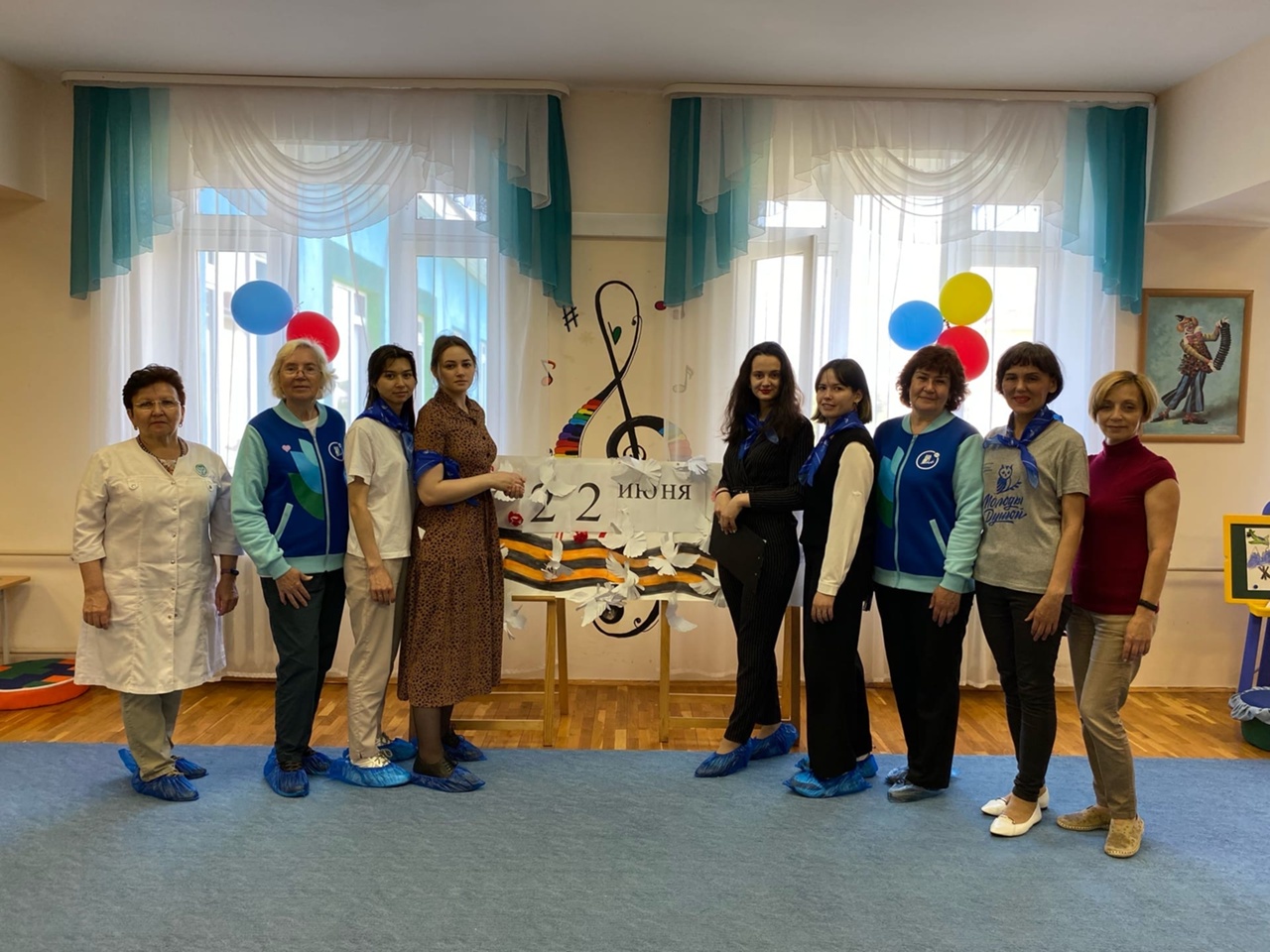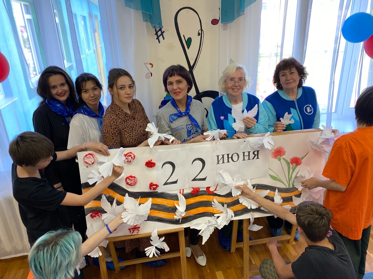 15 июня 2022 года "серебряные" волонтеры Башкортостана  Екатерина Савельева, доцент кафедры ТиМНО БГПУ им. М. Акмуллы, руководитель студенческого волонтерского отряда "Палитра", Ирина Зиннатуллина,  Светлана Ермакова совместно со студентами 1-2 курсов направления "Начальное образование"- волонтерами отряда "Палитра" БГПУ им. М. Акмуллы Наилей Гафиятуллиной, Гузель Кашаповой, Софьей Евлампьевой, Викторией Курмаевой, Екатериной Белоусовой  провели мероприятие "Мы этой памяти верны...", посвященное 22 июня - Дню памяти и скорби, для маленьких пациентов Республиканской клинической психиатрической больницы. Волонтеры провели мастер-классы по изготовлению голубя мира из бумаги и фронтового письма-треугольника, игру-лото "Личные вещи солдат и офицеров времен ВОВ 1941-1945 гг."