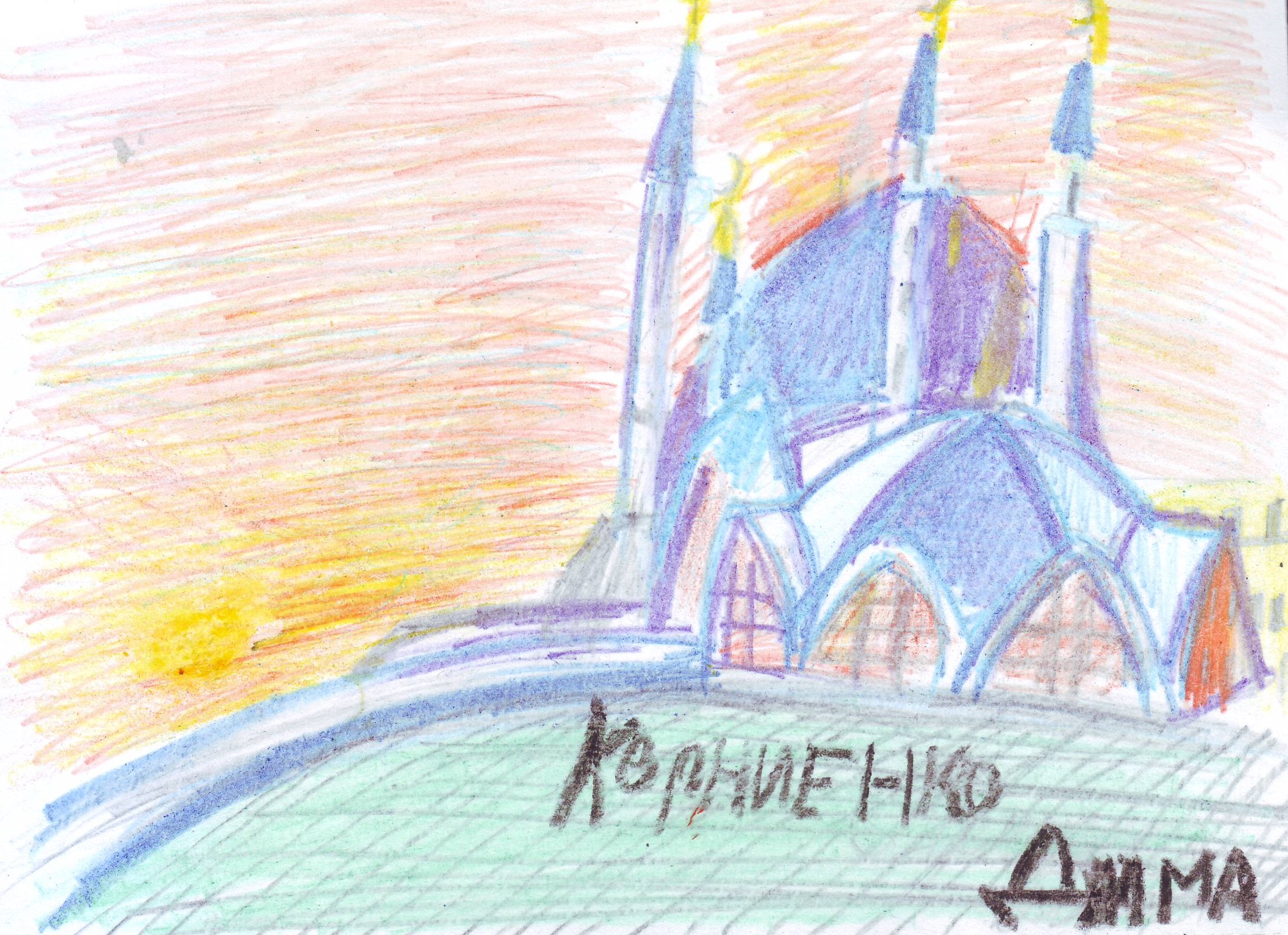 Затем по памяти рисовали понравившиеся уголки России: скалы "Три брата" и лопух в 3 метра (Сахалинская облась), мечеть Кул-Шариф (Татарстан), скульптура "Орел, терзающий змею" (Ставропольский край), Никольская гора (Ульяновская область), Горящие горы (Амурская область), гора Чалпан в Хакасии, гора Самород (Орловская область) и др.