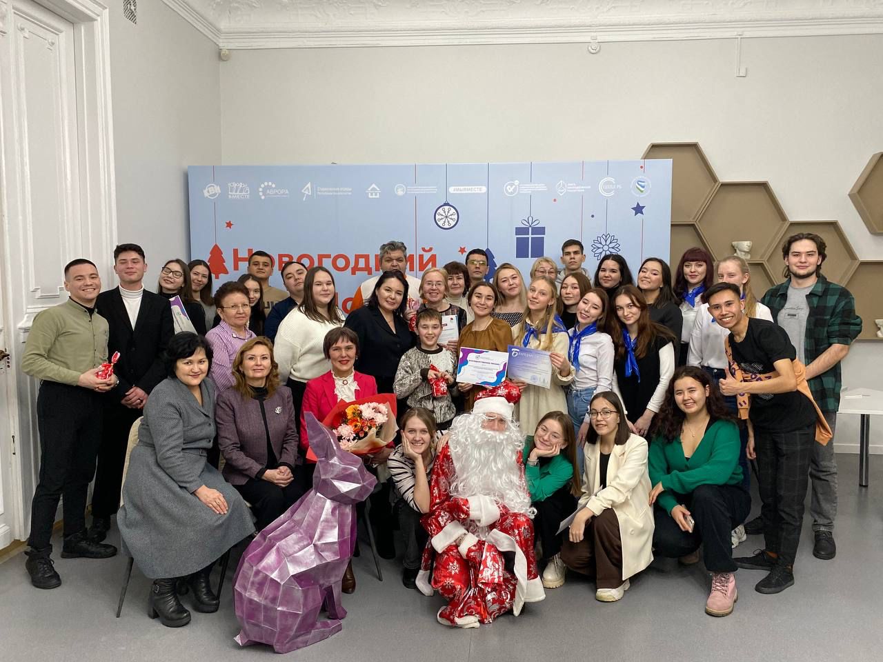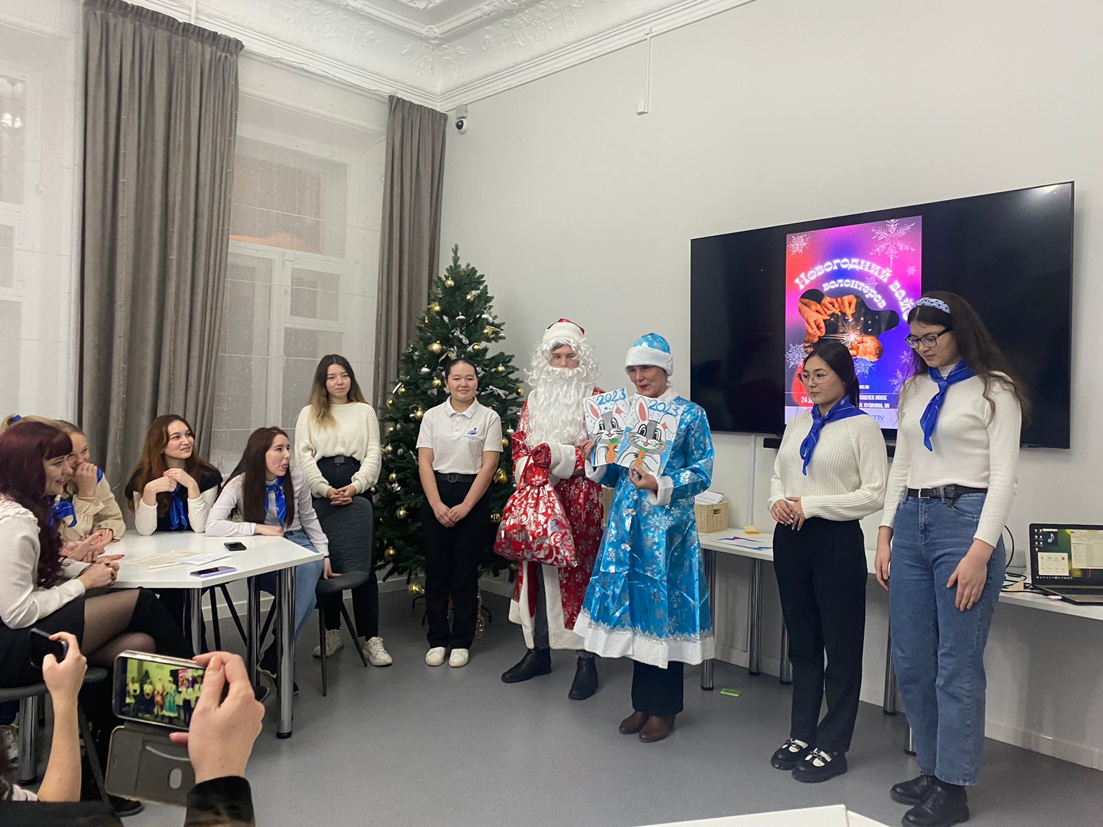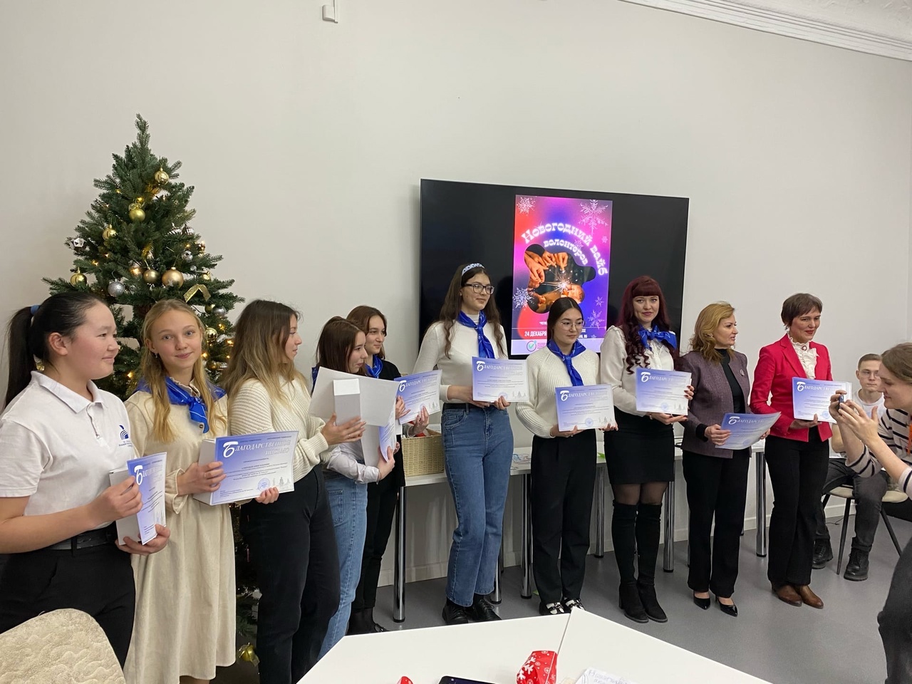 Встреча завершилась новогодним поздравлением и торжественной церемонией награждения и чествования студенческого волонтерского отряда «Палитра» БГПУ им. М.Акмуллы. Благодарственными письмами волонтеров наградили директор института педагогики Башгоспедуниверситета Ирина Боронилова и заместитель директора по воспитательной работе Айгуль Фазлыева.