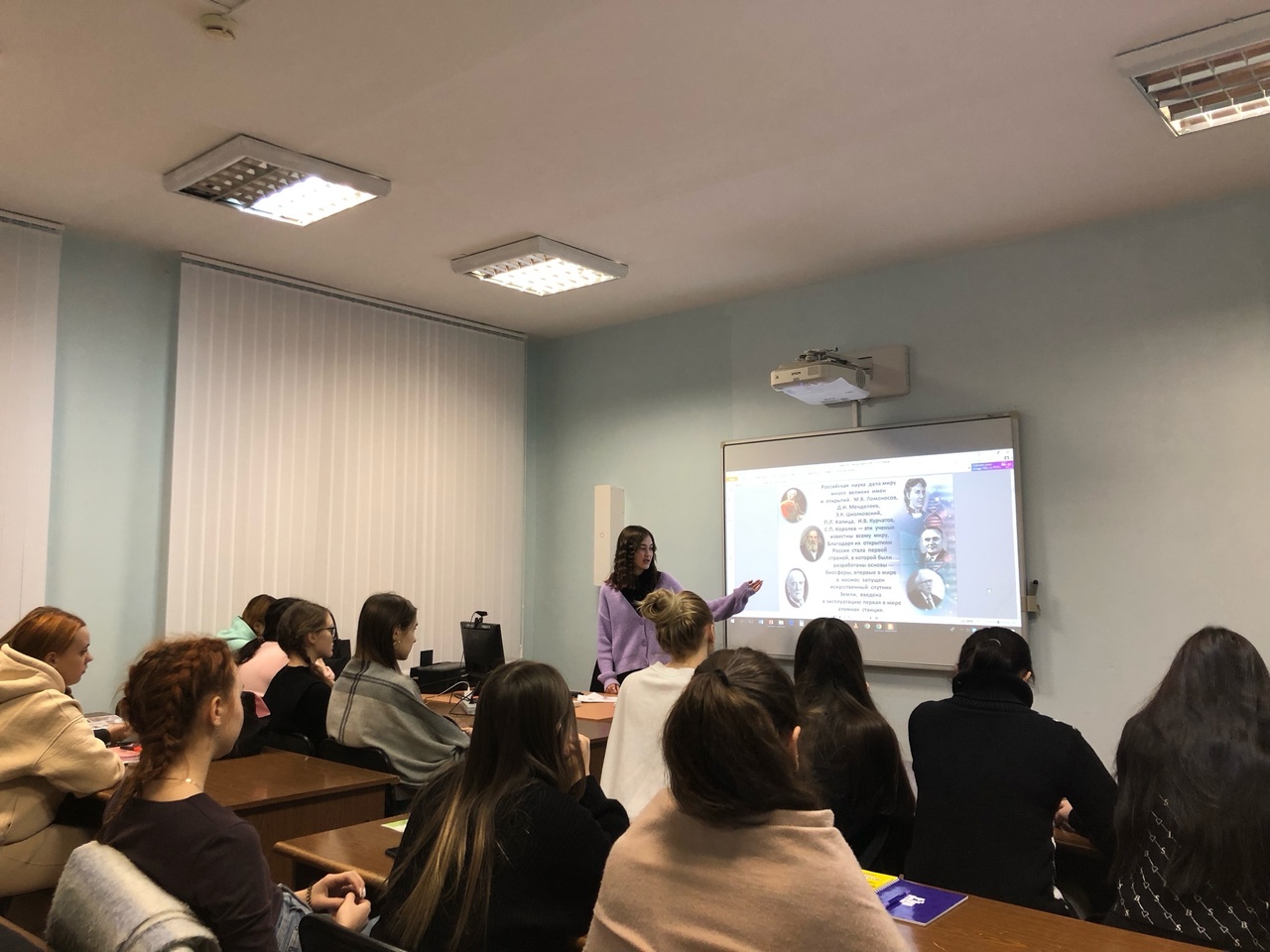 «Начальное образование», было проведено мероприятие на тему «День российской науки». Встреча была организована студенткой 2 курса Дианй Давлетбаевой (руководитель – Е.А. Савельева, к.п.н., доцент кафедры ТиМНО). Студенты познакомились с историей российской науки, узнали, какие важные открытия совершили российские учёные и какой вклад в развитие химии, физики, астрономии  и целый ряд других научных областей сделал башкирский ученый Нажип Хатмуллович Валитов (1939 — 2008). Особый интерес студенты проявили к практической части мероприятия, когда им было предложено групповое задание и участие в научной викторине.