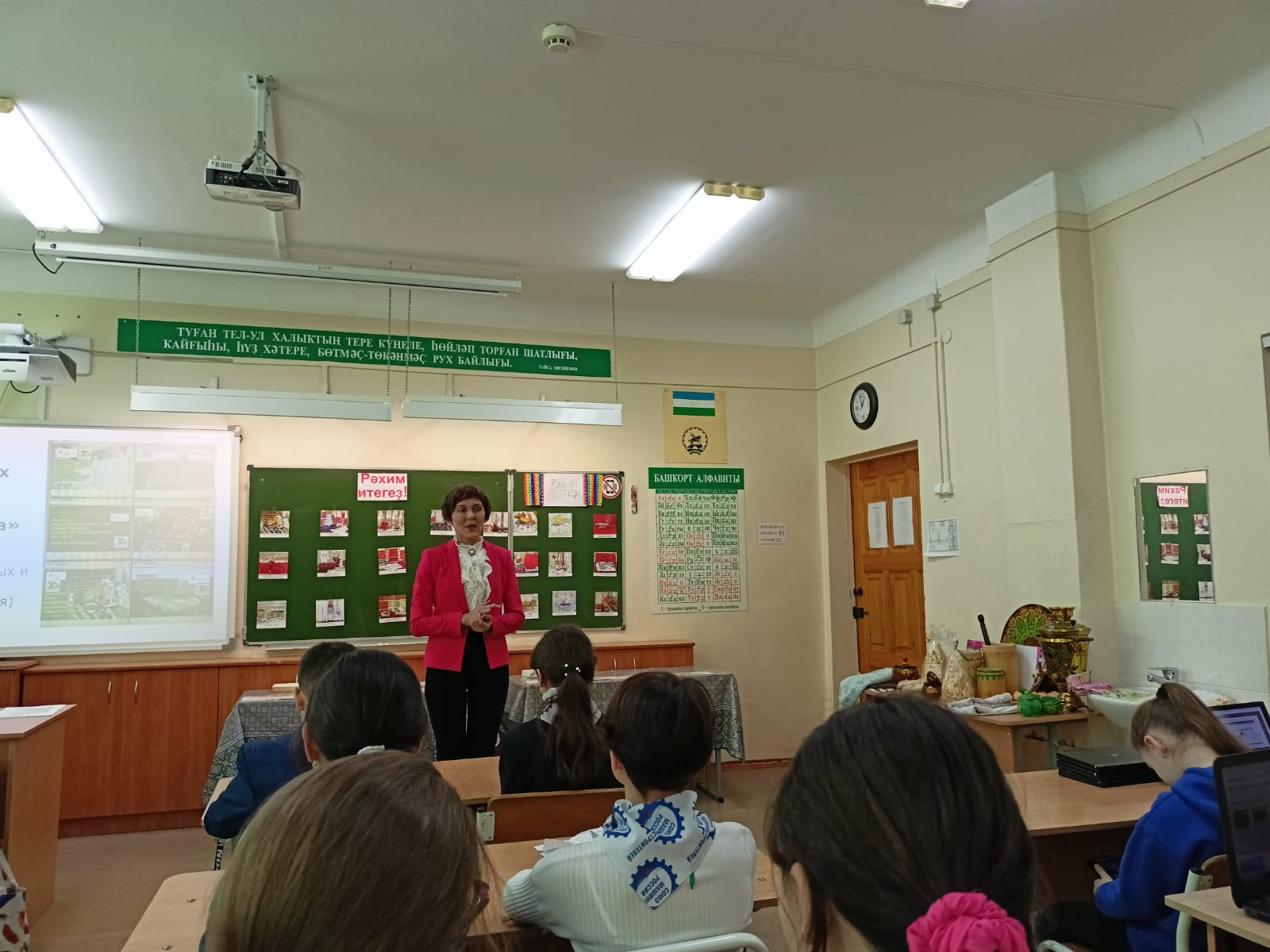 Гости посетили внеурочное занятие по башкирскому языку с элементами урока ИЗО на тему «Проведение арт-лото «Живопись Адии Ситдиковой: башкирские мотивы, рожденные кистью» в рамках инновационной площадки по теме  «Развитие творческой активности обучающихся школьного возраста средствами дидактических игровых материалов в поликультурном пространстве общеобразовательной школы» на базе кафедры теорий и методик начального образования БГПУ им. М. Акмуллы (научный рук. — к.п.н., доц. Е.А. Савельева). Занятие, проведенное учителем башкирского языка и литературы высшей квалификационной категории, Отличником образования   Республики Башкортостан Г.Р. Самарбаевой совместно с Е.А. Савельевой с включением этнокультурного компонента при преподавании предметов «Изобразительное искусство» и «Башкирский язык» как средства воспитания и сохранения этнокультурных, художественно-нравственных традиций, надолго останется в памяти тех, ктона нем присутствовал, ведь все увиденное – богатейшее наследие Башкортостана, которое педагогам можно использовать на своих уроках.