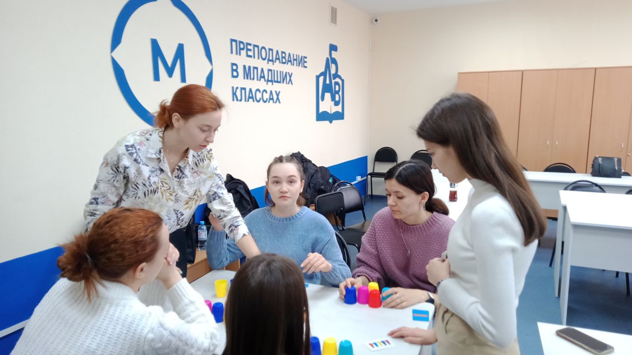 10 апреля 2023 г. волонтеры 1 курса из отряда «Палитра» под руководством  к.п.н, доц. кафедры ТиМНО Е.А. Савельевой провели мероприятие «Игротека».  В игры были вовлечены студенты 1- 3 курсов направления «Начальное образование» (всего 45 человек).  Проведенные с ними игры содействуют развитию наблюдательности, логики, мелкой моторики, пространственного воображения, координации, то есть способствуют процессу