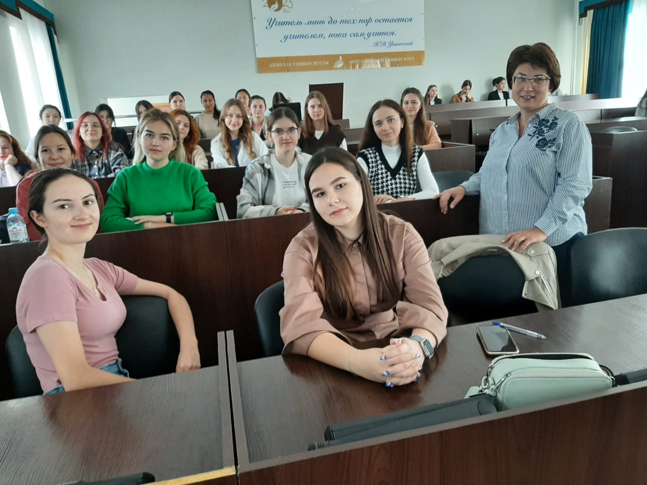 23 сентября 2023 года студенты 4 курса, обучающиеся по направлению «Начальное образование», и к.ф.н., доцент кафедры теорий и методик начального образования Ю.А. Жукова приняли участие во Всероссийском педагогическом диктанте, посвященном 200-летнему юбилею К.Д. Ушинского.