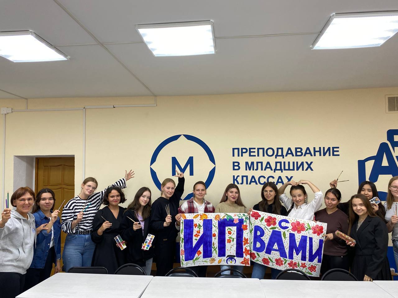 28 сентября 2023 года в рамках подготовки к общеуниверситетскому мероприятию «Студенческая осень» под руководством куратора курса, к.п.н., доц. Савельевой Е.А. студенты 1 курса, обучающиеся по направлению «Начальное образование», нарисовали плакаты со словами поддержки в адрес однокурсников и учащихся смежных