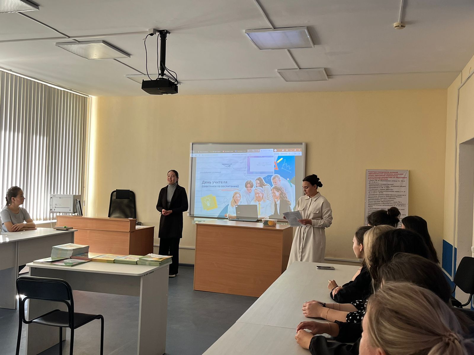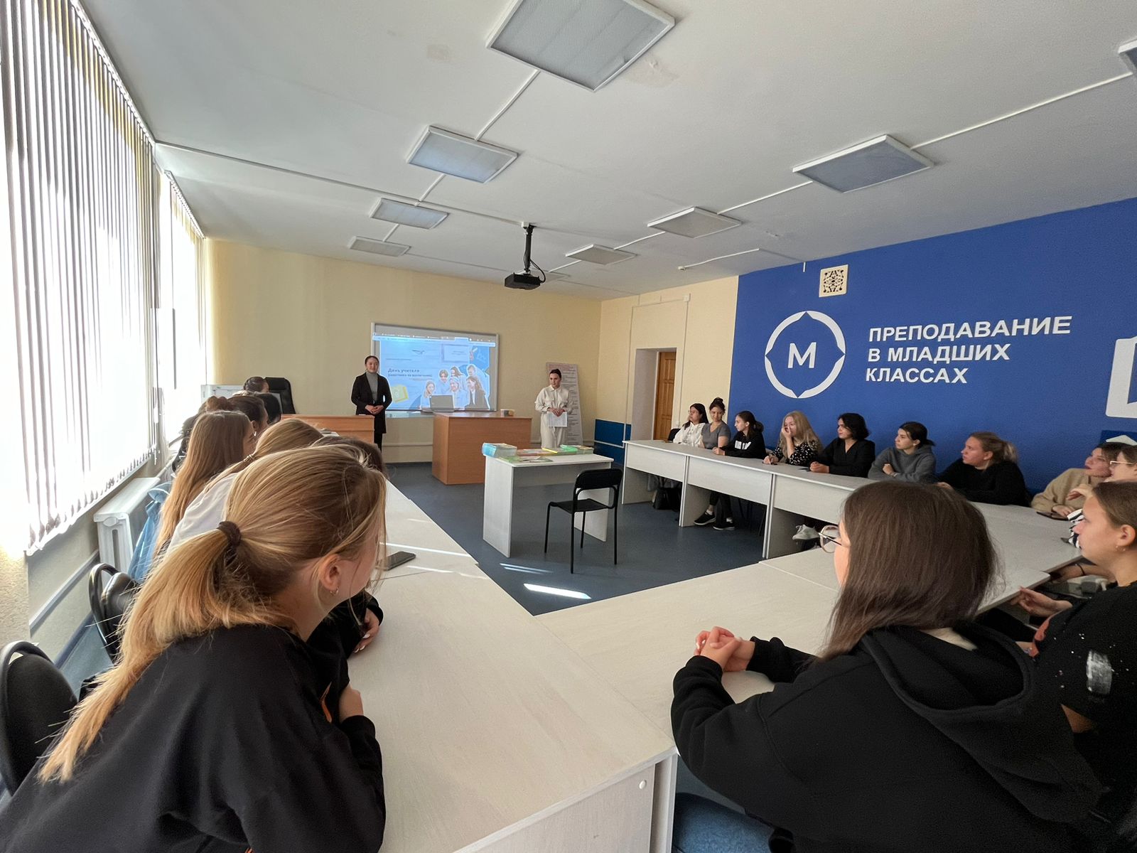 2 октября 2023 года в рамках просветительских мероприятий «Разговор о важном» для студентов 1 и 2 курсов, обучающихся по направлению «Начальное образование», была организована беседа на тему «День Учителя.