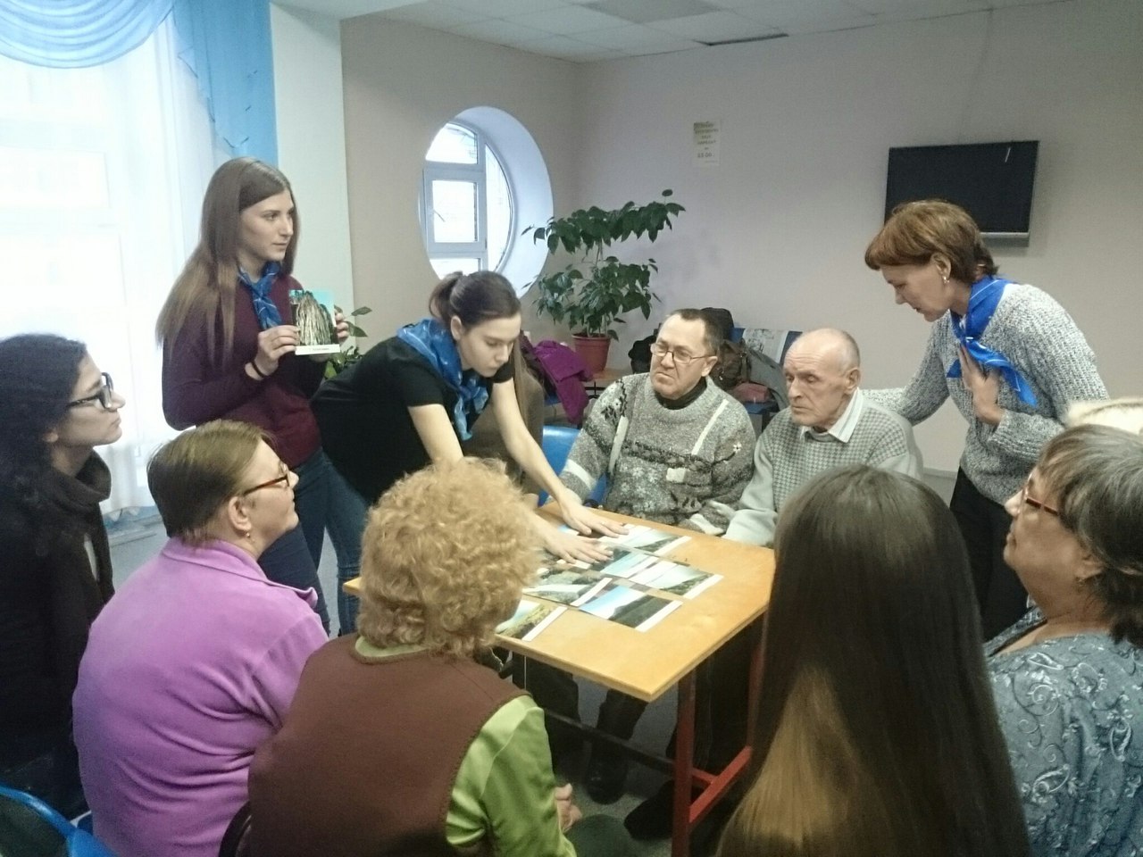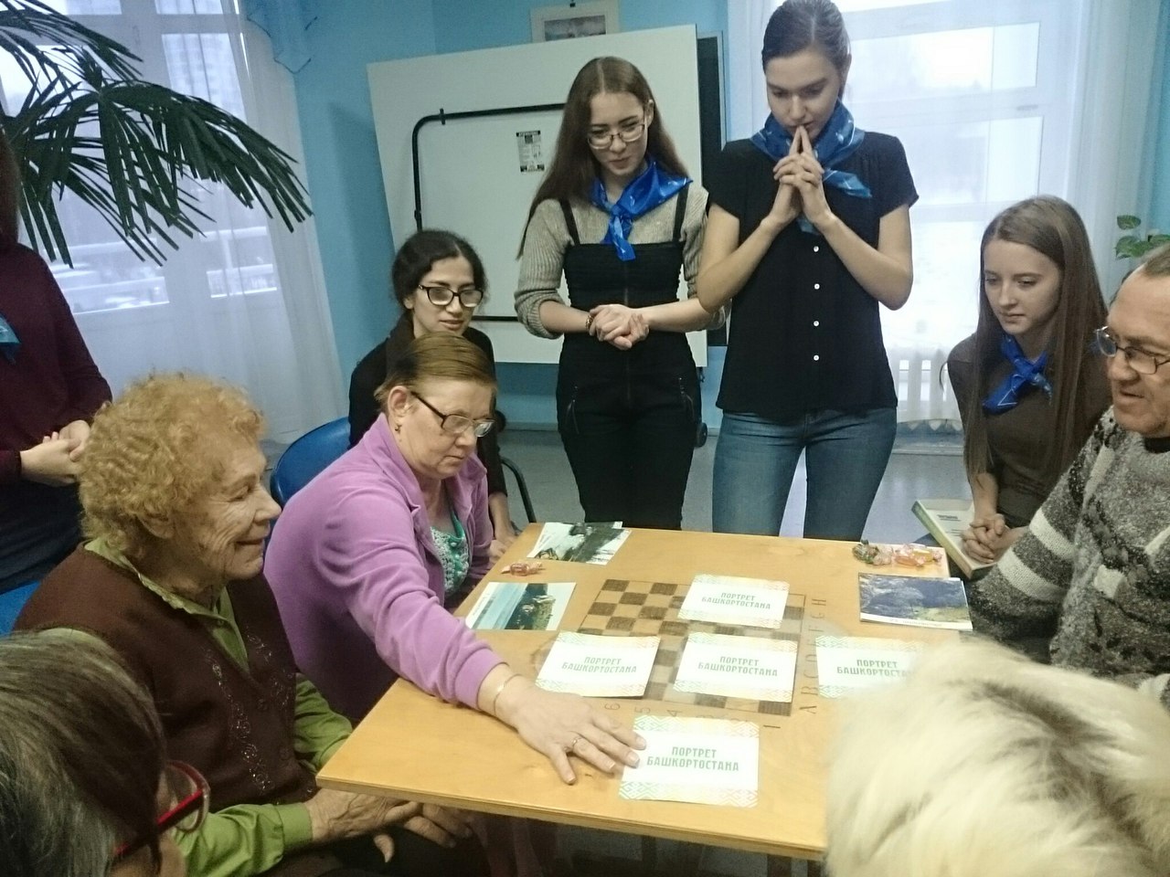 Студенты  волонтерского отряда «Палитра» (Дарья Ковшова (2 курс, направление «Начальное образование»), Елизавета Октябрёва (2 курс, направление «Начальное образование»), Лиана Миннуллина (2 курс, направление «Начальное образование»), Снежана Ермакова (2 курс, направление «Начальное образование»),  Рашида Батырова (1 курс, направление «Дощкольное образование»),  Регина Гареева (3 курс, направление «Дощкольное образование»),  Эвелина Мухетдинова (1 курс, направление «Начальное образование») под рук. к.п.н., доцента кафедры теорий и методик начального образования, серебряного волонтера Е. А. Савельевой, 29 октября 2017 года  провели настольную игру-лото «Природные достопримечательности Башкортостана» с жителями Уфимского интерната в рамках проекта «Настольные игры о Родине».