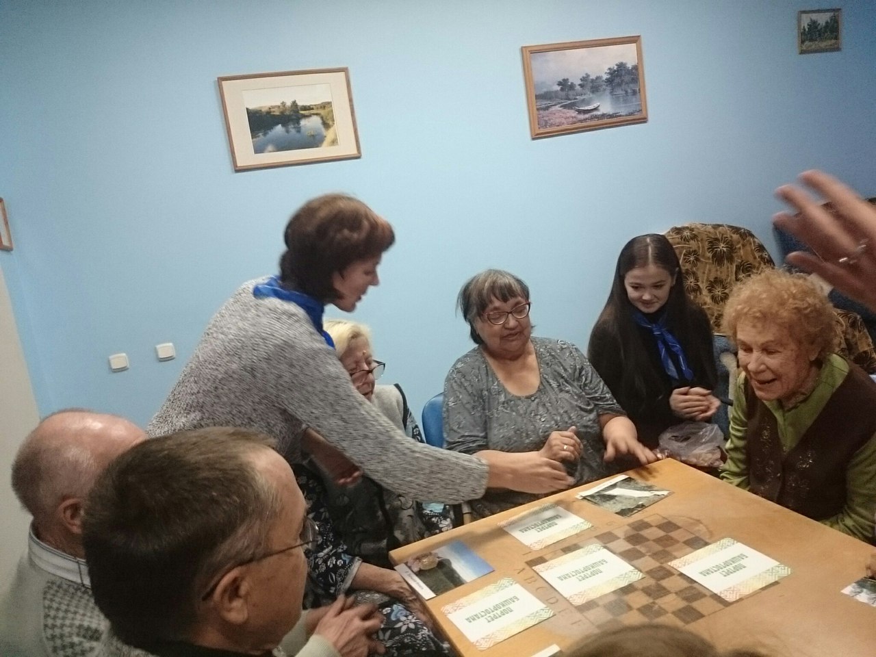 Регина Гареева: "Уфимский дом-интернат для пожилых и инвалидов я посетила впервые, впечатление остались хорошие. Игра-лото "Природные достопримечательности Башкортостана" понравилась взрослым, мне было интересно наблюдать, как они втянулись в игру с азартом и радовались правильно угаданному ходу и происходило легкое соперничество. Я с радостью еще раз приму участие в проведении настольных игр для жителей интерната».