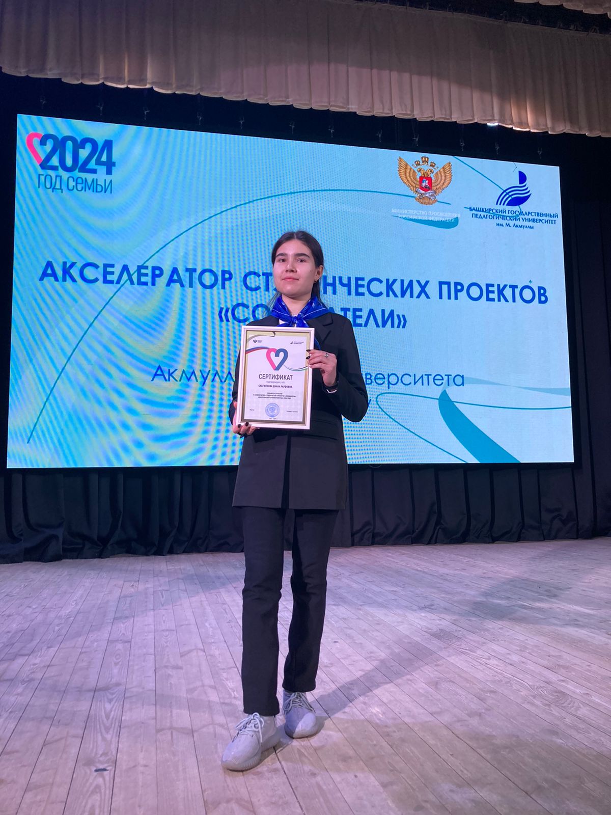 Магистрант 2 курса направления Педагогическое образование профиль Менеджмент в образовании Диана Сабгиянова, под рук. наставника проекта, к.п.н., доц. кафедры ТиМНО Е.А. Савельевой, приняла участие в Акселераторе студенческих проектов «Созидатели», разработав и представив проект "Достопримечательности Чекмагушевского района Республики Башкортостан", на университетском этапе.