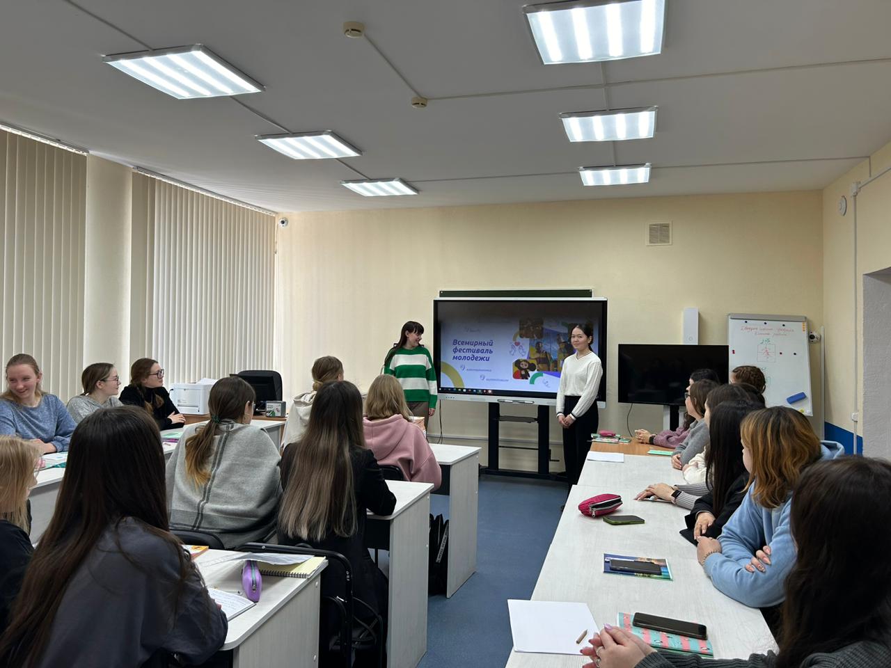 Обучающиеся познакомились с предстоящим Всемирным фестивалем молодёжи, докладчик раскрыли его значение, как возможности установления диалога между молодыми людьми разных стран для созидания мирного будущего, взаимного обогащения культурами и традициями разных народов, воспитали в студентах чувства гражданственности и патриотизма.