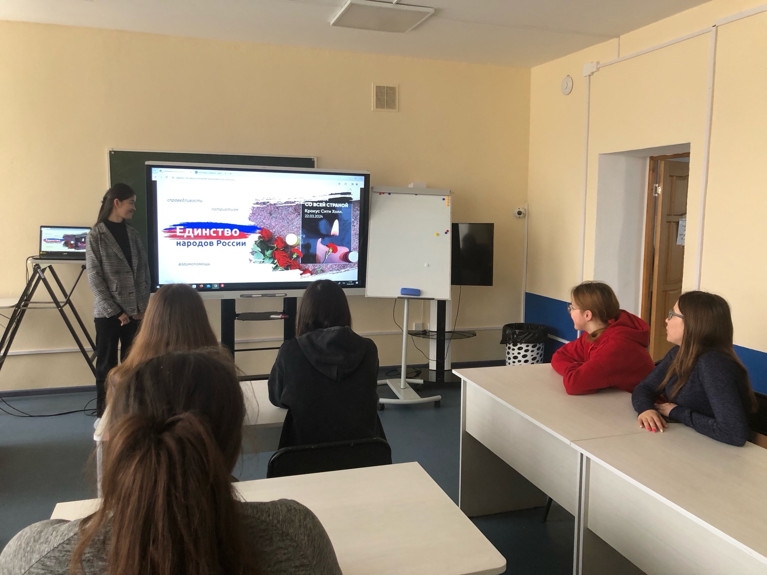 25 марта 2024 года в рамках просветительских мероприятий «Разговор о важном» для студентов 1 курсов, обучающихся по направлению Педагогическое образование, профиль «Начальное образование», была организована беседа на тему «ЕДИНСТВО НАРОДОВ РОССИИ».