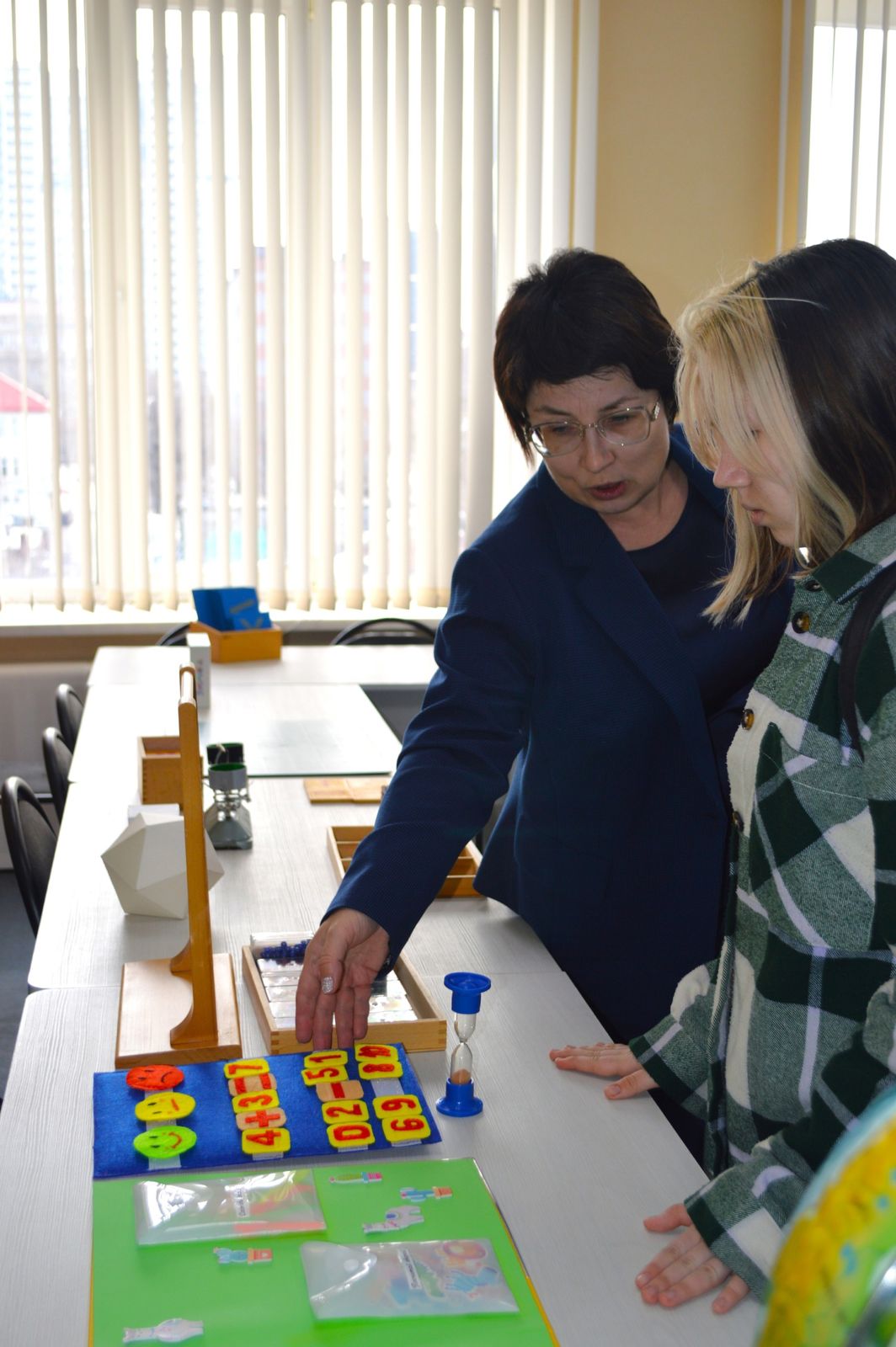 Студенты 2 курса, обучающиеся по направлению Педагогическое образование, профиль «Начальное образование», под руководством доцентов Ю.А. Жуковой и Н.Н. Сандаловой познакомили гостей кафедры с современными техническими средствами обучения и играми-лото, разработанными доцентом Е.А. Сандаловой. Атмосфера встречи была дружественной и в целом можно сказать, что состоялся очень конструктивный диалог с будущими студентами кафедры.