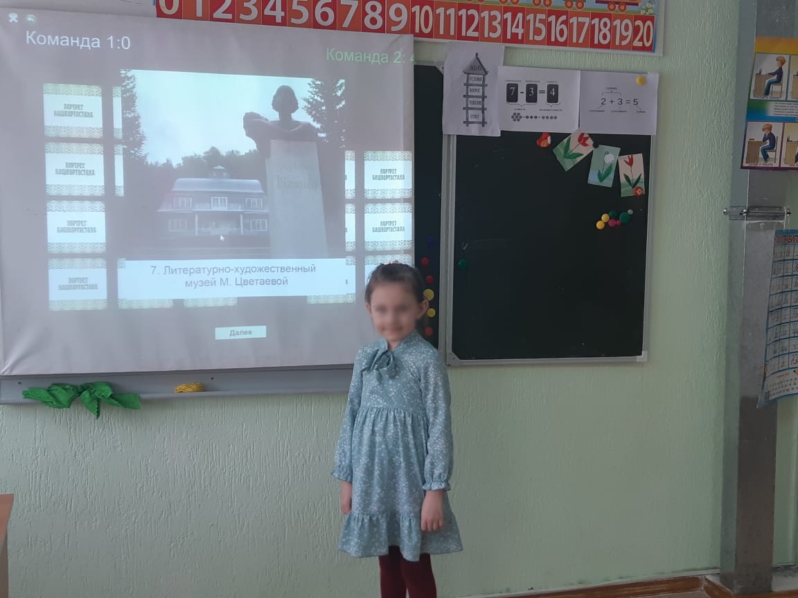 5 марта 2024 года в МАОУ в Башкирской гимназии-интернат г. Белебея  Белебеевский район РБ (директор Д.Г. Фатхутдинова), в рамках работы инновационной площадки (тема «Развитие творческой активности обучающихся младшего школьного возраста средствами дидактических игровых материалов в условиях поликультурного общеобразовательного пространства» науч. рук. к.п.н., доц. кафедры ТиМНО БГПУ им. М. Акмуллы Е.А. Савельева), учителя начальной школы провели для обучающихся дидактические игры на уроках и во внеурочной деятельности, направленные на развитие познавательной и творческой активности детей. Учитель начальных классов Гульназ Факилевна Габдрафикова провела для обучающихся игру "Классифицируй предметы» на уроках башкирского языка в 1 классе, учитель начальных классов Найля Ханифовна Габдуллина для обучающихся 1 класса провела авторскую игру – развивающую игру-лото «Достопримечательности Белебеевского района Республики Башкортостан» в бумажном и электронном формате.  Развивающая игра-лото создана Н.Х. Габдуллиной совместно с коллективом учёных и студентами-выпускниками БГПУ им. М. Акмуллы (Е.А. Савельева, К.И. Аглиуллина, В.М. Янгирова, О.В. Сергеева, Буланкин А.А.) в 2022 году, на игру получено авторское свидетельство в Роспатенте.