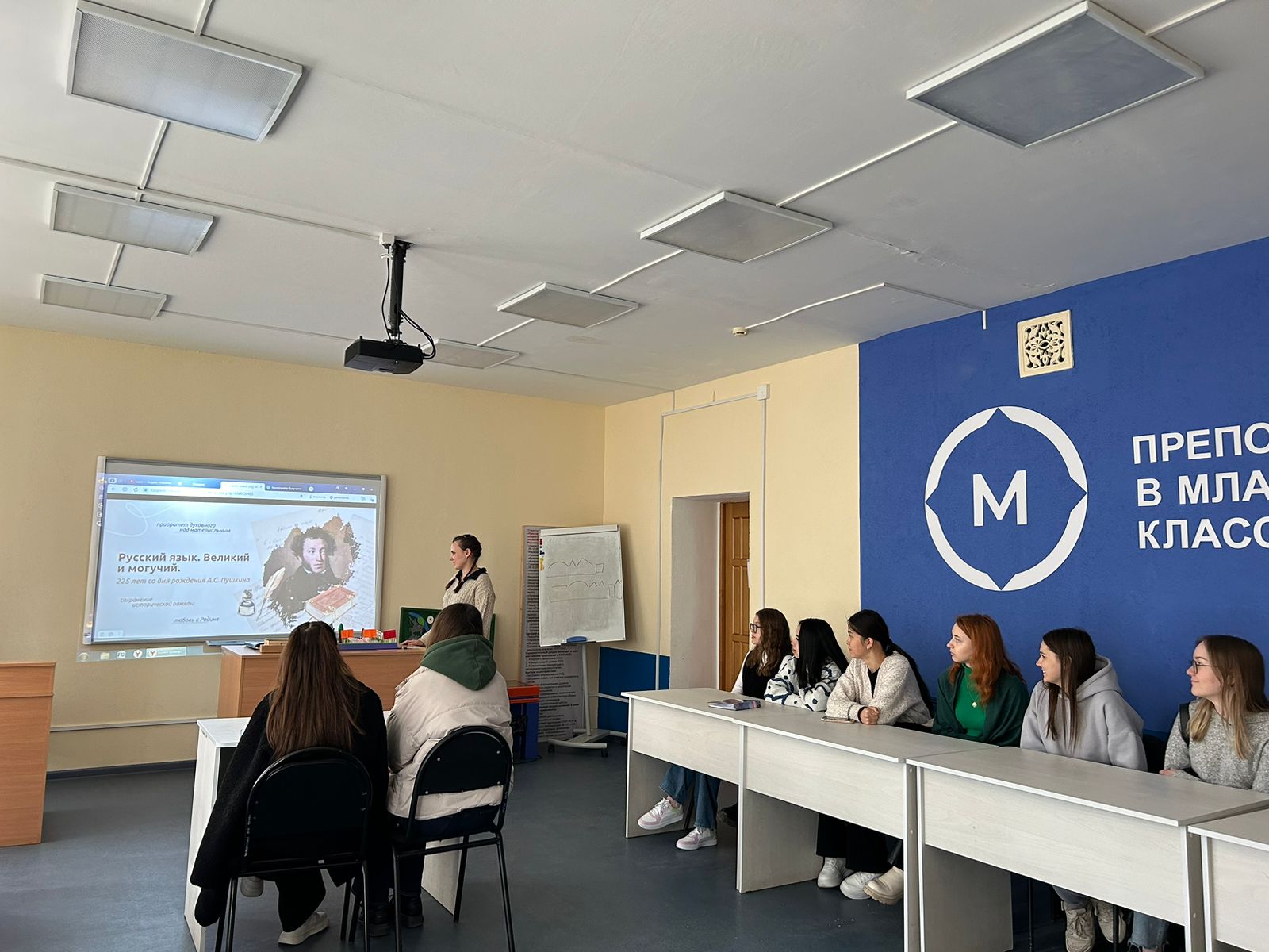 13 мая 2024 года в рамках просветительских мероприятий «Разговор о важном» для студентов 1 курсов, обучающихся по направлению Педагогическое образование, профиль «Начальное образование», была организована беседа на тему «Русский язык. Великий и могучий. 225 лет со дня рождения А. С. Пушкина».