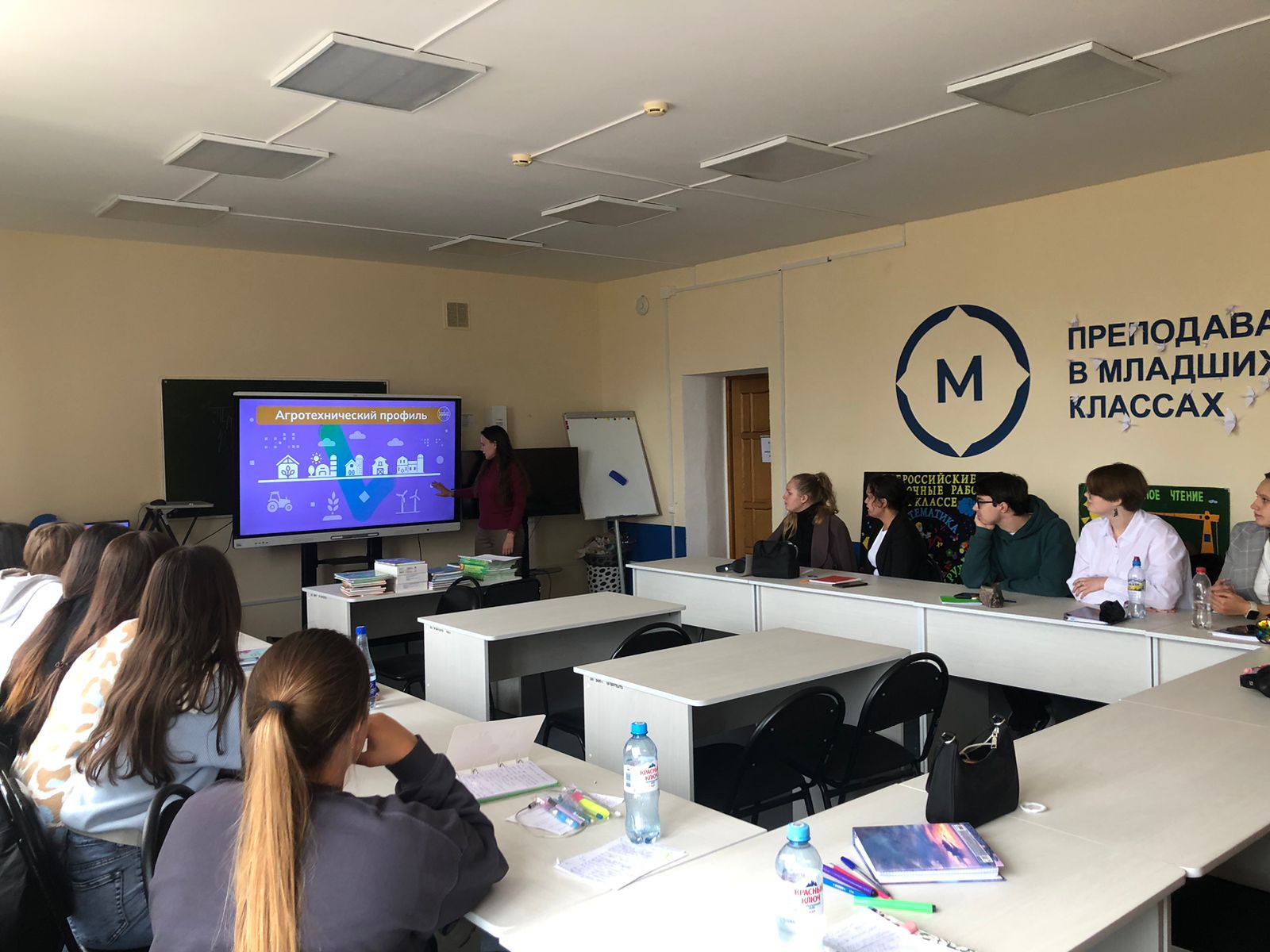 На мероприятии была организована беседа о достижениях России в отраслях аграрной сферы, актуальных задачах и перспективах, крупнейших работодателях: агрохолдингах, их географической представленности, были рассмотрены такие направления как: полеводство, овощеводство, садоводство, цветоводство, лесоводство. В ходе занятия студенты познакомились с профессионально важными качествами и особенностями построения карьеры в сфере сельского хозяйства.