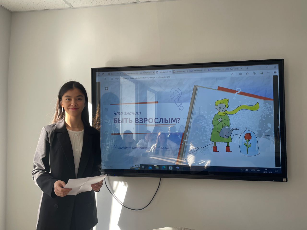 14 октября 2024 года в рамках просветительских мероприятий "Разговор о важном» для студентов Акмуллинского педуниверситета в кластере" Центр педагогических компетенций" была организована беседа на тему "Что значит быть взрослым?"