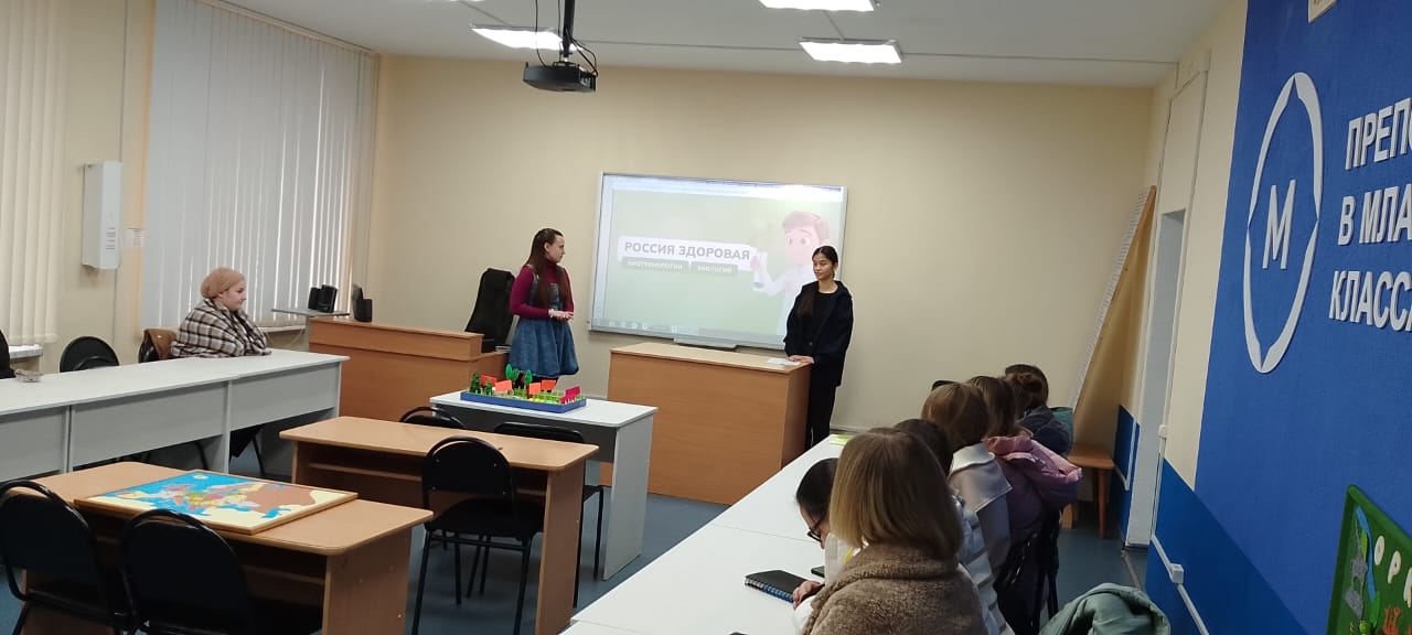 24 октября 2024 года, в рамках курса «Россия – мои горизонты», для студентов 1 курсов, обучающихся по направлению «Педагогическое образование» профиль «Начальное образование», было проведено профориентационное занятие «Россия здоровая: биотехнологии, экология». Провели занятие студентки 3 курса направления «Педагогическое образование» профиль «Начальное образование» Елизавета Егорова и Мырзайым Чотбаева (руководитель – Е.А. Савельева, к.п.н., доцент кафедры ТиМНО).