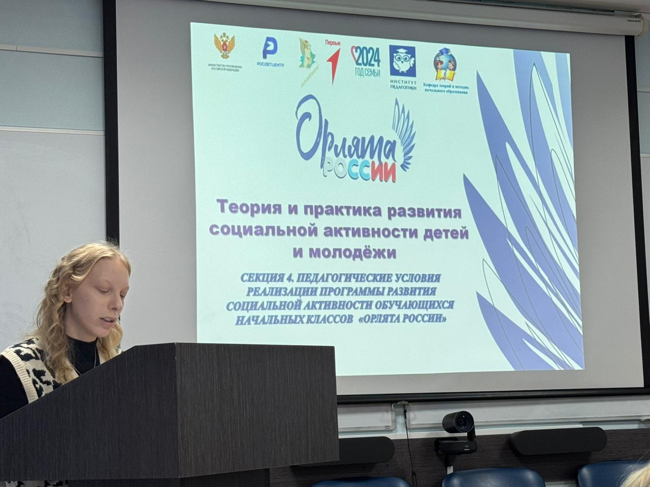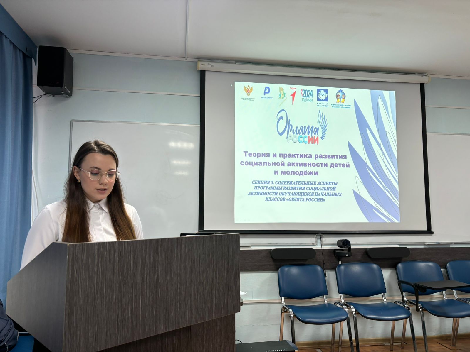 В рамках секции "Содержательные аспекты программы развития социальной активности обучающихся начальных классов"Орлята России " (модератор к.п.н., доцент Сандалова Наталья Николаевна) освещались проблемы реализации треков программы "Орлята России" в ходе реальной вожатской практики студентов и профессиональной деятельности практикующих учителей начальных классов.