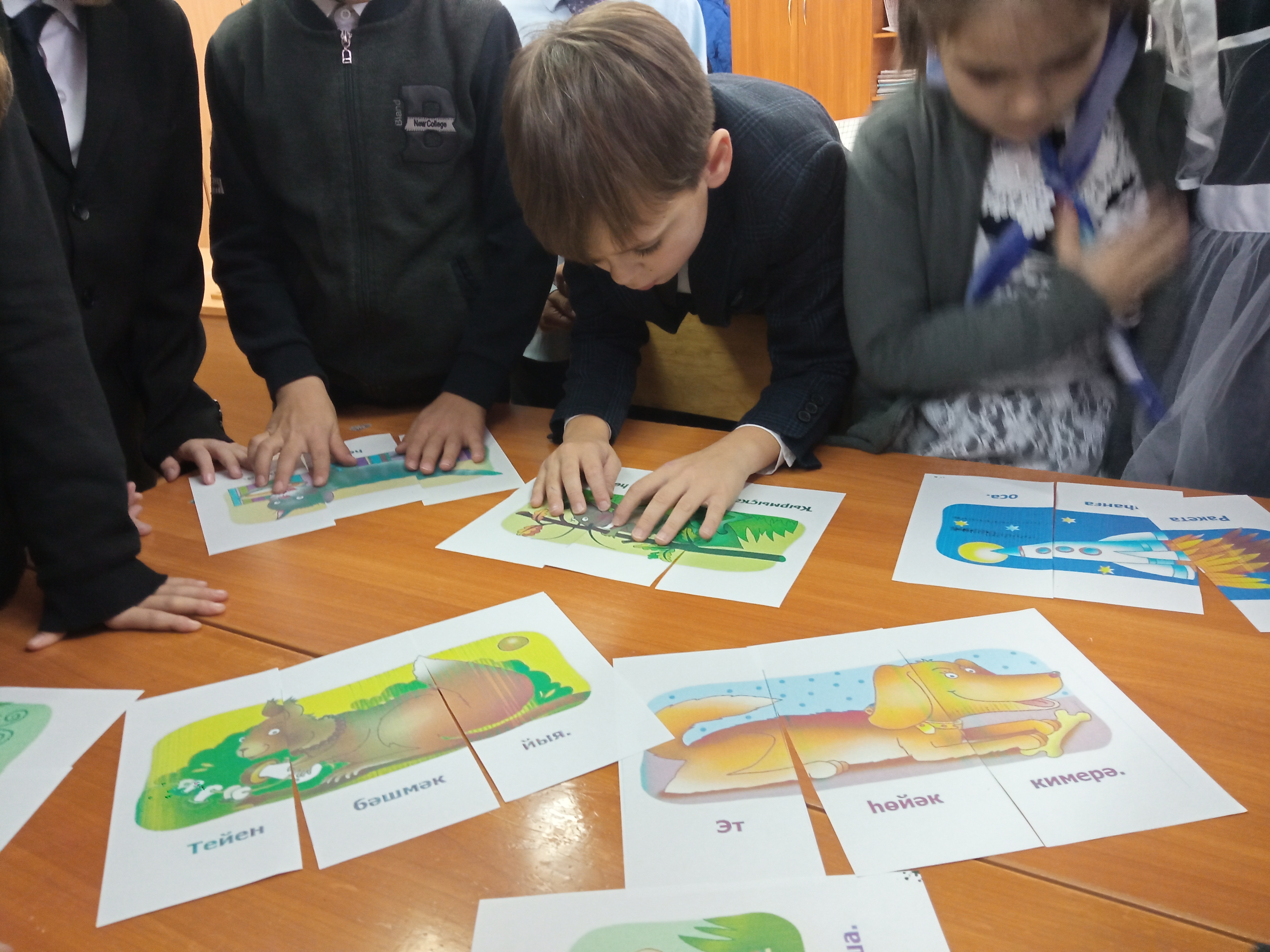 28 ноября 2024 года и 3 декабря 2024 года в Башкирской гимназии-интернат г. Белебея Белебеевского района РБ (директор Д.Г. Фатхутдинова, заместитель директора по научно-методической работе З.Н. Гильманова, заместитель УВР по начальным классам и учитель начальных классов Г.А. Ярова), в рамках работы инновационной площадки Акмуллинского университета (науч. рук. к.п.н., доц. кафедры ТиМНО Е.А. Савельева), учителя начальных классов Г.Ф. Габдрафикова и Н.Х. Габдуллина организовали и провели с обучающимися 2  классов дидактические игры.  Г.Ф. Габдрафикова организовала и провела на уроке башкирского языка игру "Собери пазл - составь предложение".   Цель мероприятия: развивать интерес к изучению башкирского языка, закрепить полученные знания. Н.Х Габдуллина организовала и провела подвижную народную башкирскую игру "Липкие  пеньки". Цель мероприятия: развить интерес к народным играм, воспитывать интерес к народным обычаям и традициям.