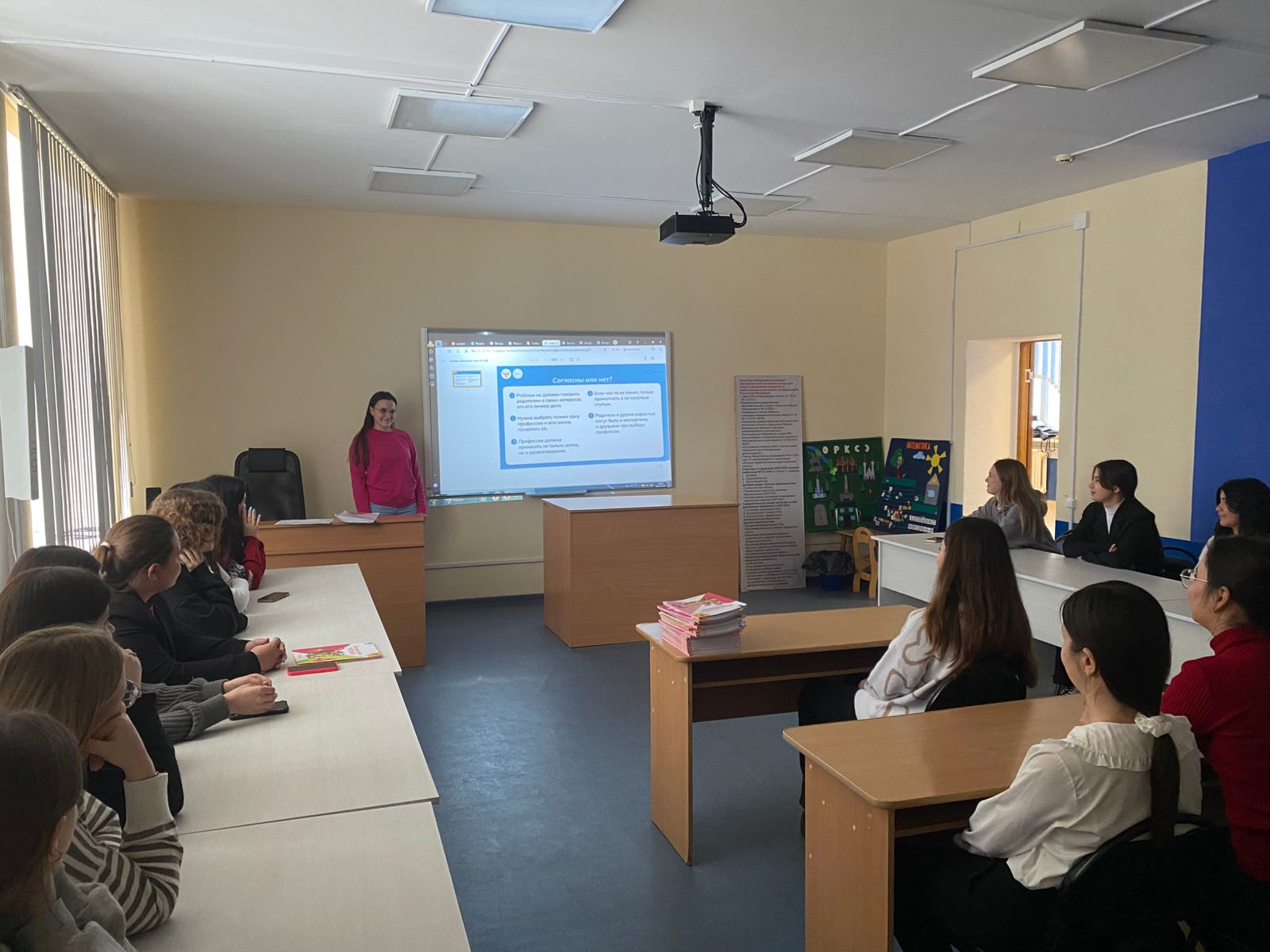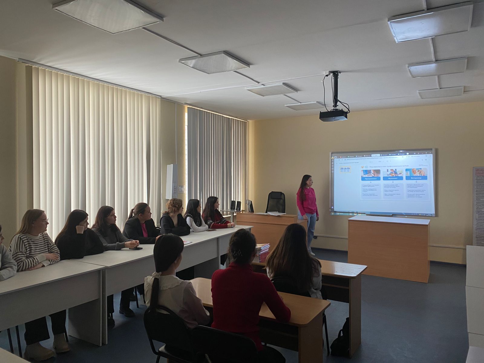 26 декабря 2024 года, в рамках курса «Россия – мои горизонты», для студентов 1 курсов, обучающихся по направлению «Педагогическое образование» профиль «Начальное образование», было проведено профориентационное занятие «Проектное занятие». Провели занятие студентки 3 курса направления «Педагогическое образование» профиль «Начальное образование» Елизавета Егорова, Тахмина Рысбаева (руководитель – Е.А. Савельева, к.п.н., доцент кафедры ТиМНО). На мероприятии была организована беседа, направленная на проектирование собственной деятельности и поиску  ответов на свои вопросы, связанные с профориентацией.