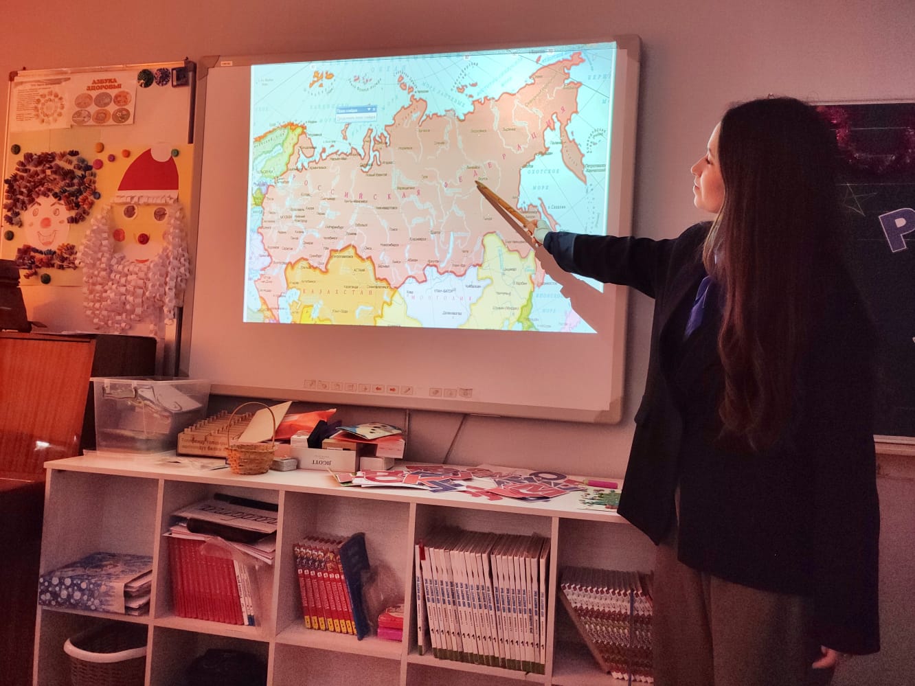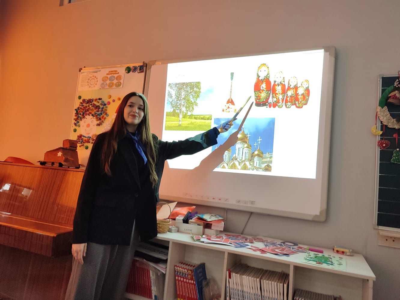 Своё первое занятие в кыргызской школе Алина посвятила знакомству. Дети узнали много нового о России. Она рассказала детям о наших символах, показала красивейшие природные ландшафты: горы, леса, реки и моря. В интерактивной части занятия дети проходили игру "Кто хочет стать миллионером", где закрепили свои знания о России. "По завершении занятия мы вместе исполнили песню о России для того, чтобы создать атмосферу важности и значимости нашей страны" - пишет Алина. В 2025 году с кафедры теорий и методик начального образования на стажировку в Кыргызстан отправляется еще одна группа студентов.