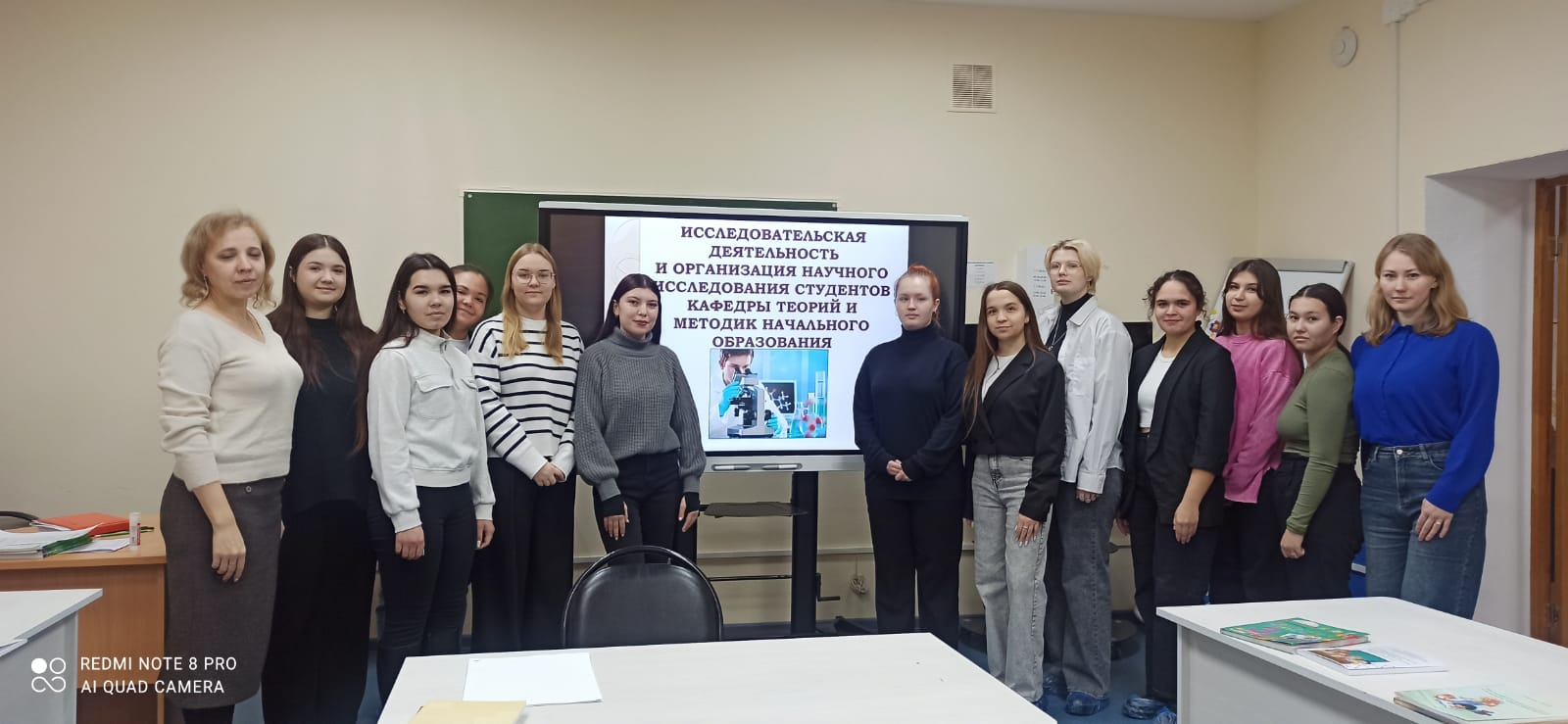 Интересными направлениями научных исследований студентов является применение инновационных технологий в обучении младших школьников, организация читательской деятельности обучающихся, гражданско-патриотическое воспитание младших школьников при реализации регионального литературного компонента, применении ИКТ в исследовательской деятельности младших школьников и др. Студентам также оказана консультативная помощь преподавателями кафедры: д.п.н., профессором Янгировой В.М., к.ф.н., доцентом Жуковой Ю.А., к.п.н., доцентом Савельевой Е.А. и др.