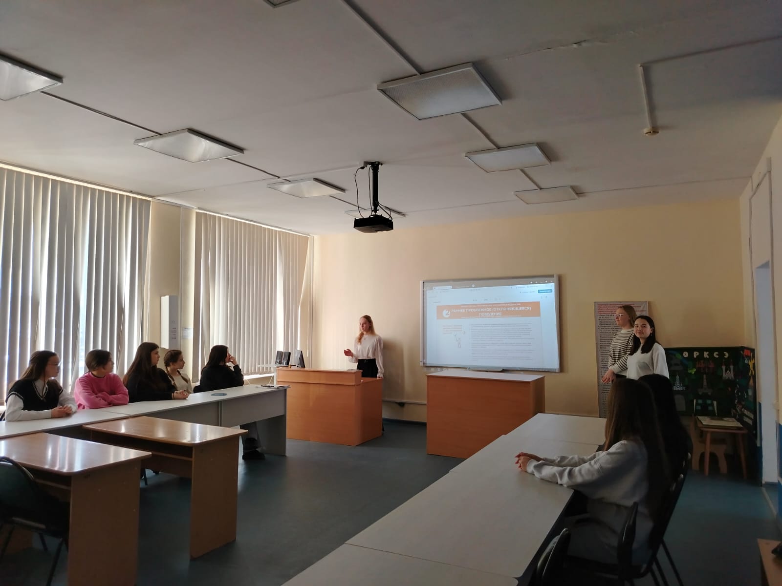 3 февраля 2025 года проведено  профилактическое мероприятие для студентов 1, 2 и 3 курсов, обучающихся по направлению «Педагогическое образование», профиль «Начальное образование», на тему «Навигатор профилактики и памятка по различным видам девиантного поведения обучающегося». В качестве докладчиков выступили  доцент кафедры ТиМНО Е.А.Савельева и студентки 2-3 курса направления «Педагогическое образование», профиль «Начальное образование» Эркинбай кызы Альбина, Елизавета Егорова, Тахмина Рысбаева, Мырзайым Чотбаева, Ксения Чернова, Арина Рясова (руководитель – Е.А. Савельева, к.п.н., доцент кафедры ТиМНО). На мероприятии докладчики познакомили с навигатором профилактики и памяткой по различным видам девиантного поведения обучающегося. Данная информация поможет  при прохождении педагогической практики, в решении сложных и нестандартных ситуаций.