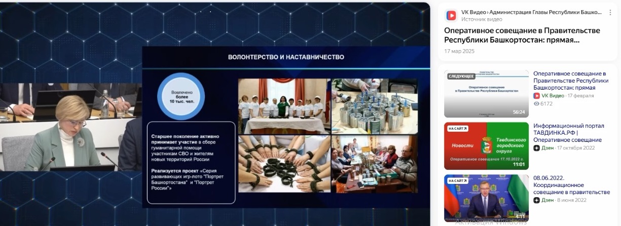 17 марта 2025 года на Оперативном совещании в Правительстве Республики Башкортостан министр семьи, труда и социальной защиты Линара Хакимовна Иванова, освещая результаты проекта "Активное долголетие" по направлению "Волонтерство и наставничество", рассказала о флагманском проекте "серебряных" волонтеров Башкортостана "Серия развивающих игр-лото "Портрет Башкортостана"/"Портрет России".