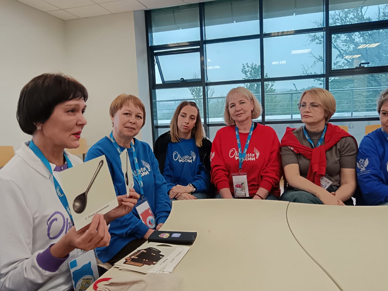 Екатерина Савельева, кандидат педагогических наук, доцент БГПУ им. М. Акмуллы, координатор "серебряных" волонтеров Башкортостана провела мастер-класс для участников курсов в виде обучения методике проведения военно-исторического лото "Предметы личного пользования солдат и офицеров времен ВОВ 1941-1945 гг.".