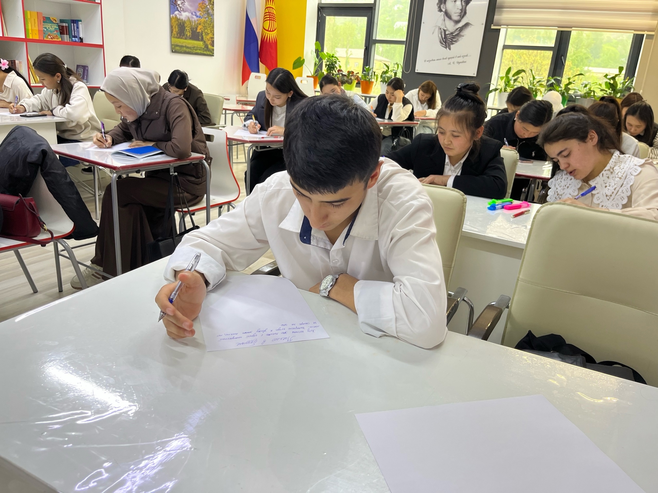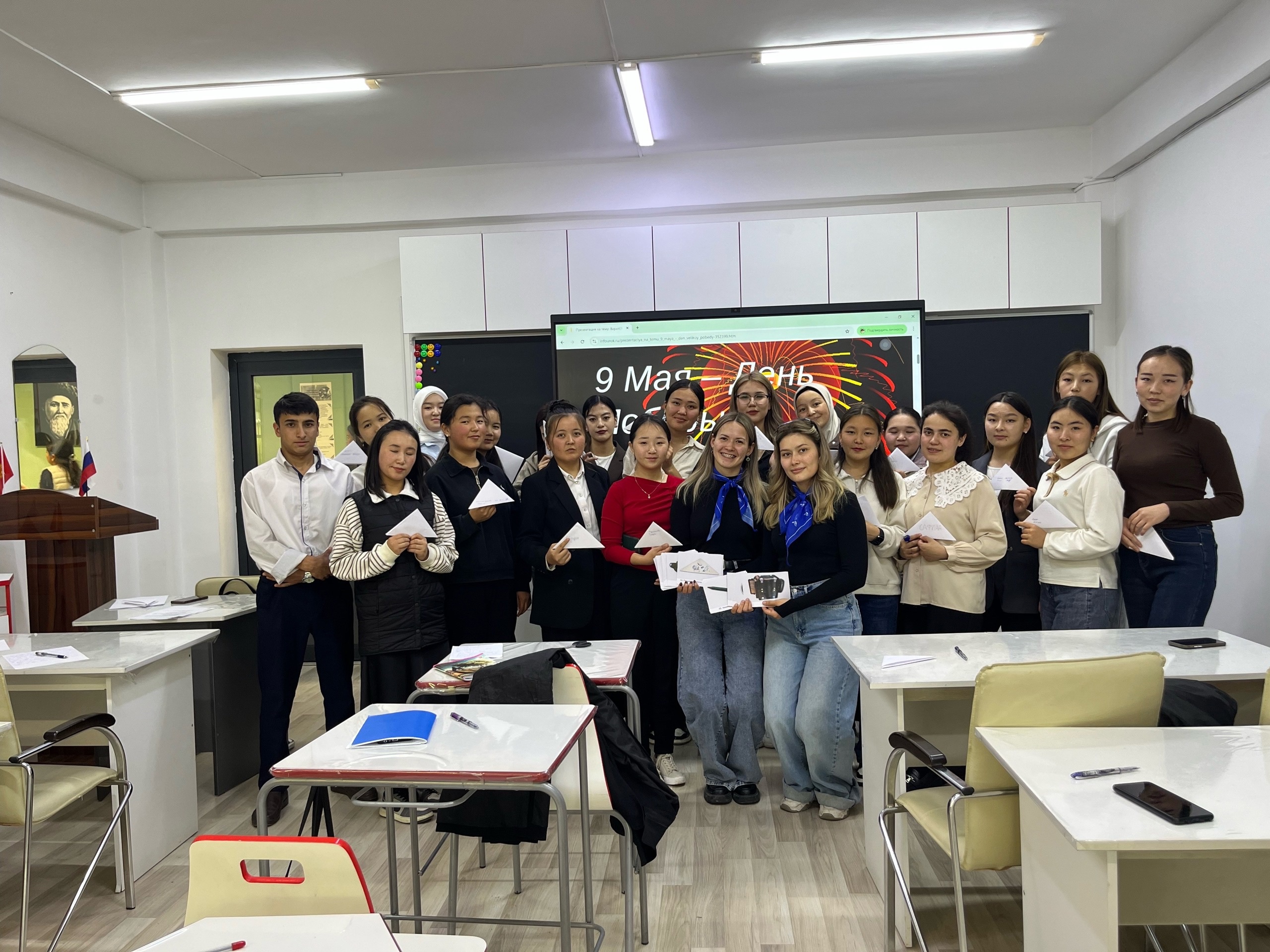 18 апреля 2025 года в Ошском государственном педагогическом Университете (ОшМПУ) им. А.Ж. Мырсабекова на базе Центра открытого образования на русском языке в г. Ош (Кыргызстан) волонтерами отряда "Палитра", студентами 4 курса (направление «Педагогическое образование», профиль «Начальное образование») Института педагогики Акмуллинского педагогического университета, участниками международного гуманитарного проекта "Российский учитель за рубежом" Эвелиной Балашовой и Гузель Кашаповой для студентов 1 курса, (профиль "Русский язык и литература") проведено военно-историческое лото из серии развивающих игр-лото "Портрет Башкортостана" (автор - Е. А Савельева, доцент кафедры теорий и методик начального образования БГПУ им. М. Акмуллы, координатор "серебряных" волонтеров Башкортостана).