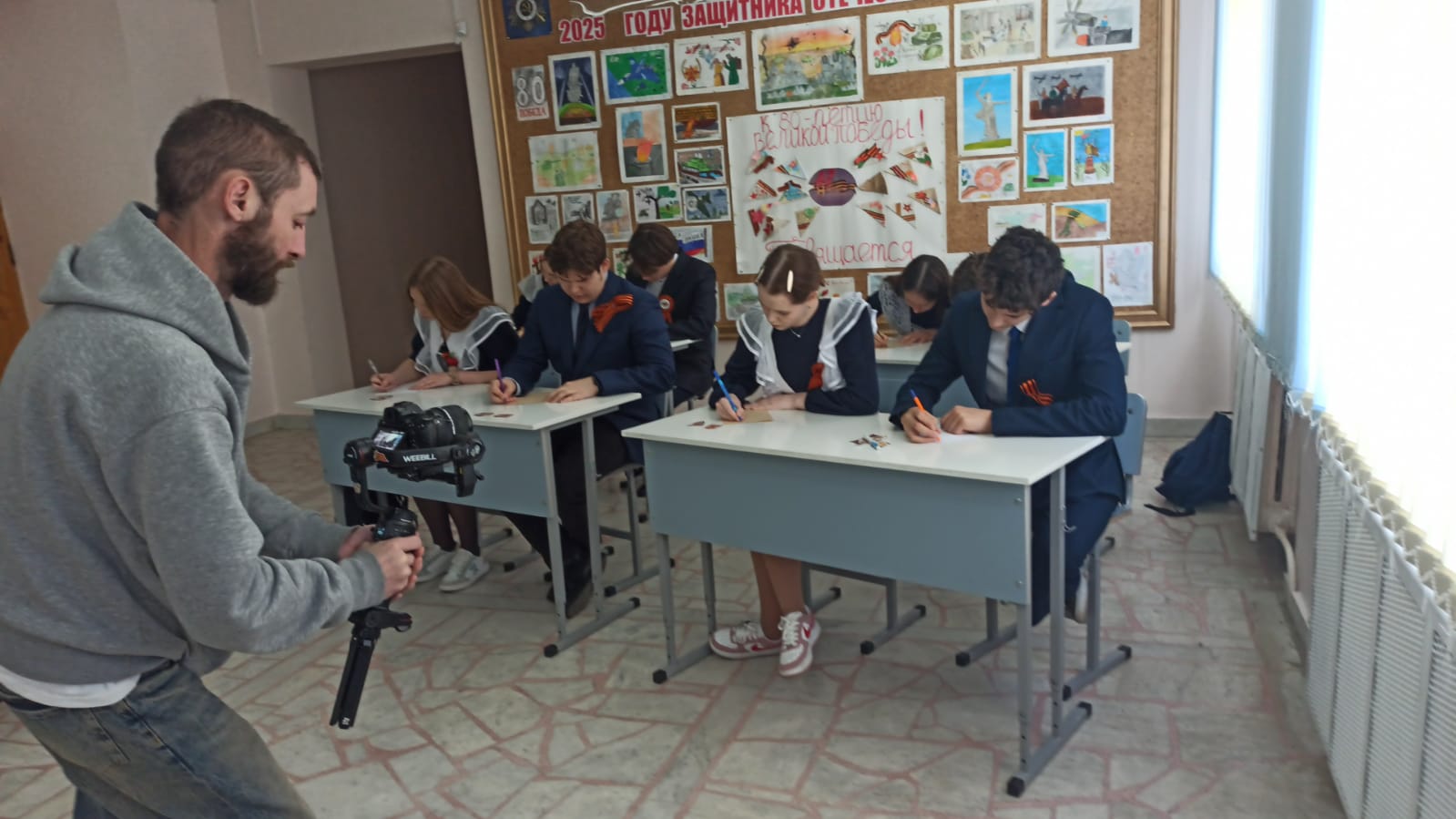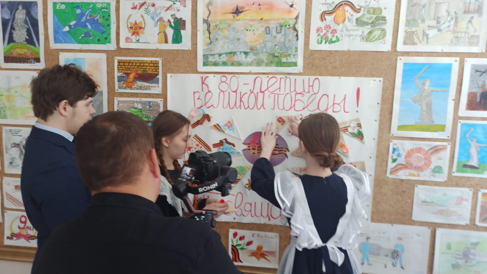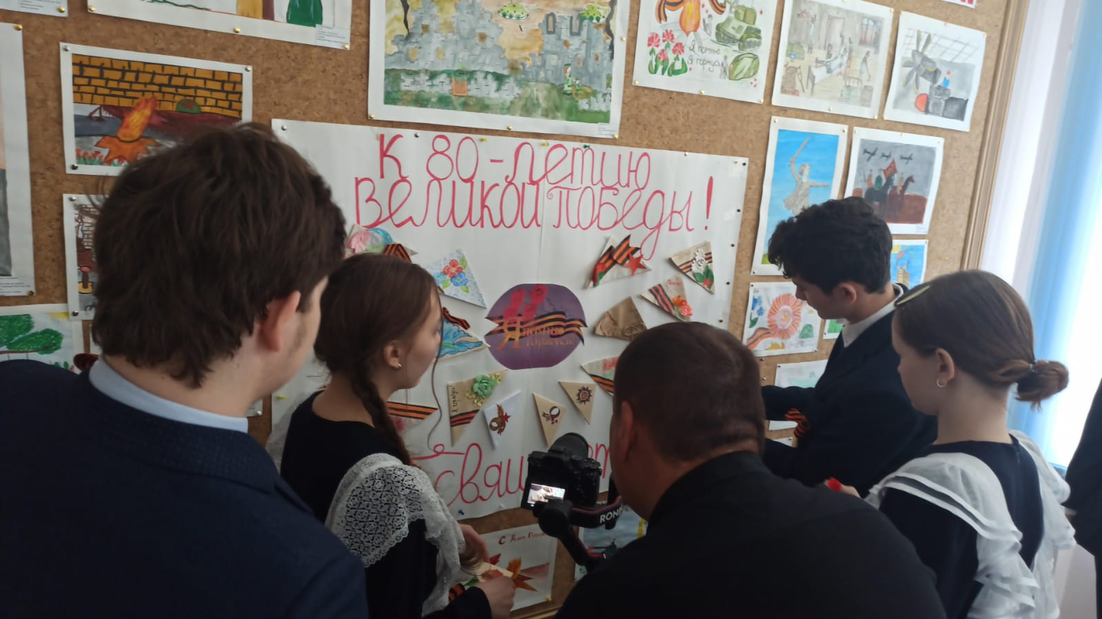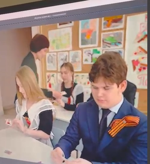 Ребята, под рук. доцента БГПУ им. М. Акмуллы, координатора "серебряных" волонтеров Башкортостана Екатерины Савельевой, написали письма для ветеранов ВОВ, сложили письма в виде фронтового треугольника и оформили ими плакат, посвященный 80-летию Великой Победы.