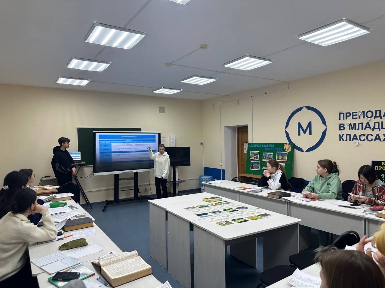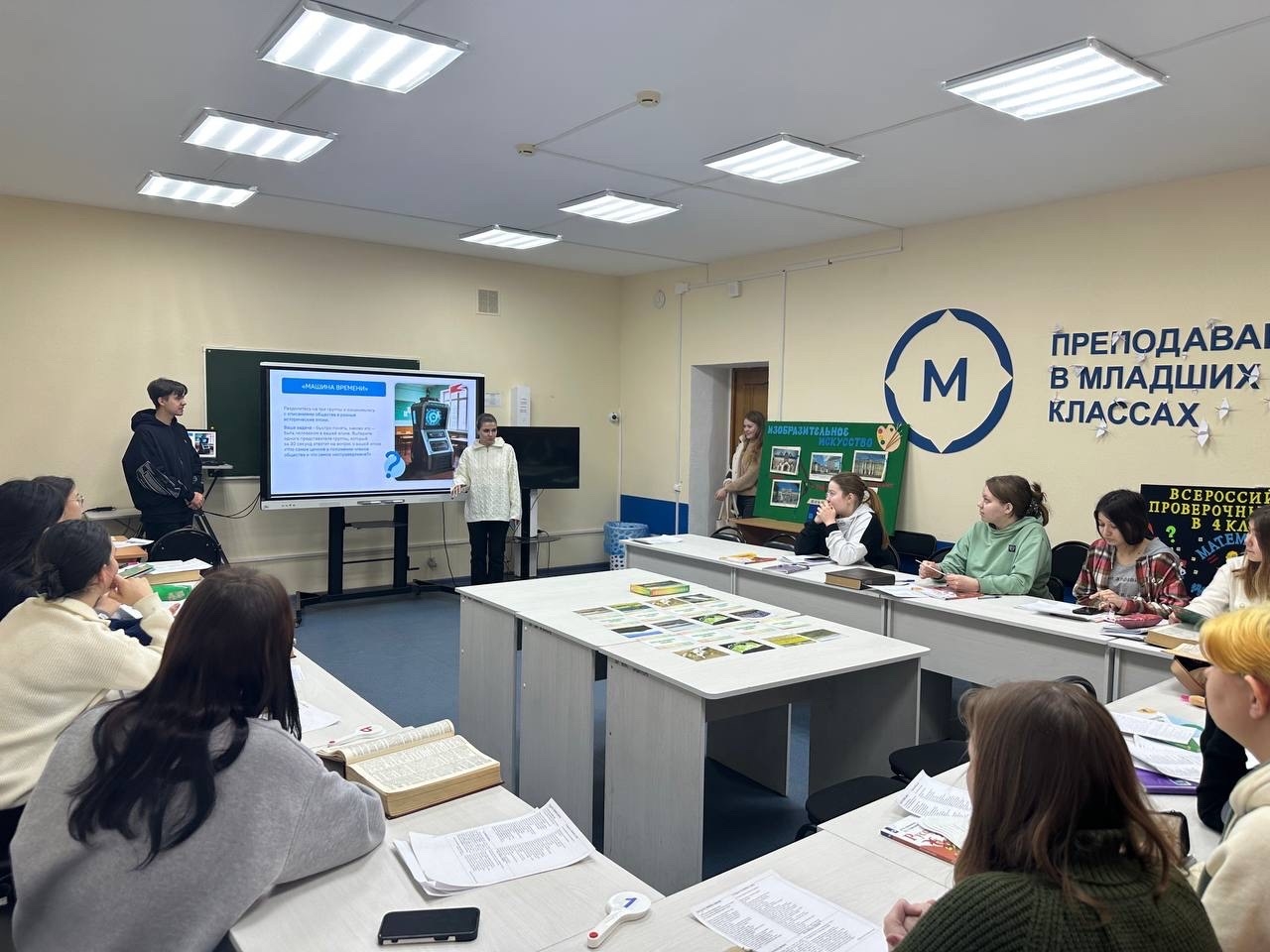 15 декабря 2025 года в рамках просветительских мероприятий «Разговор о важном» для студентов 1 курсов, обучающихся по направлению «Педагогическое образование», профиль «Начальное образование», была организована беседа на тему «Закон и справедливость. Ко дню Конституции Российской Федерации». В качестве докладчиков выступили студентки 2 курса направления «Педагогическое образование», профиль «Начальное образование» Эвелина Иванова, Азалия Зайнуллина, Жилина Ксения и доцент кафедры ТиМНО Е.А. Савельева.