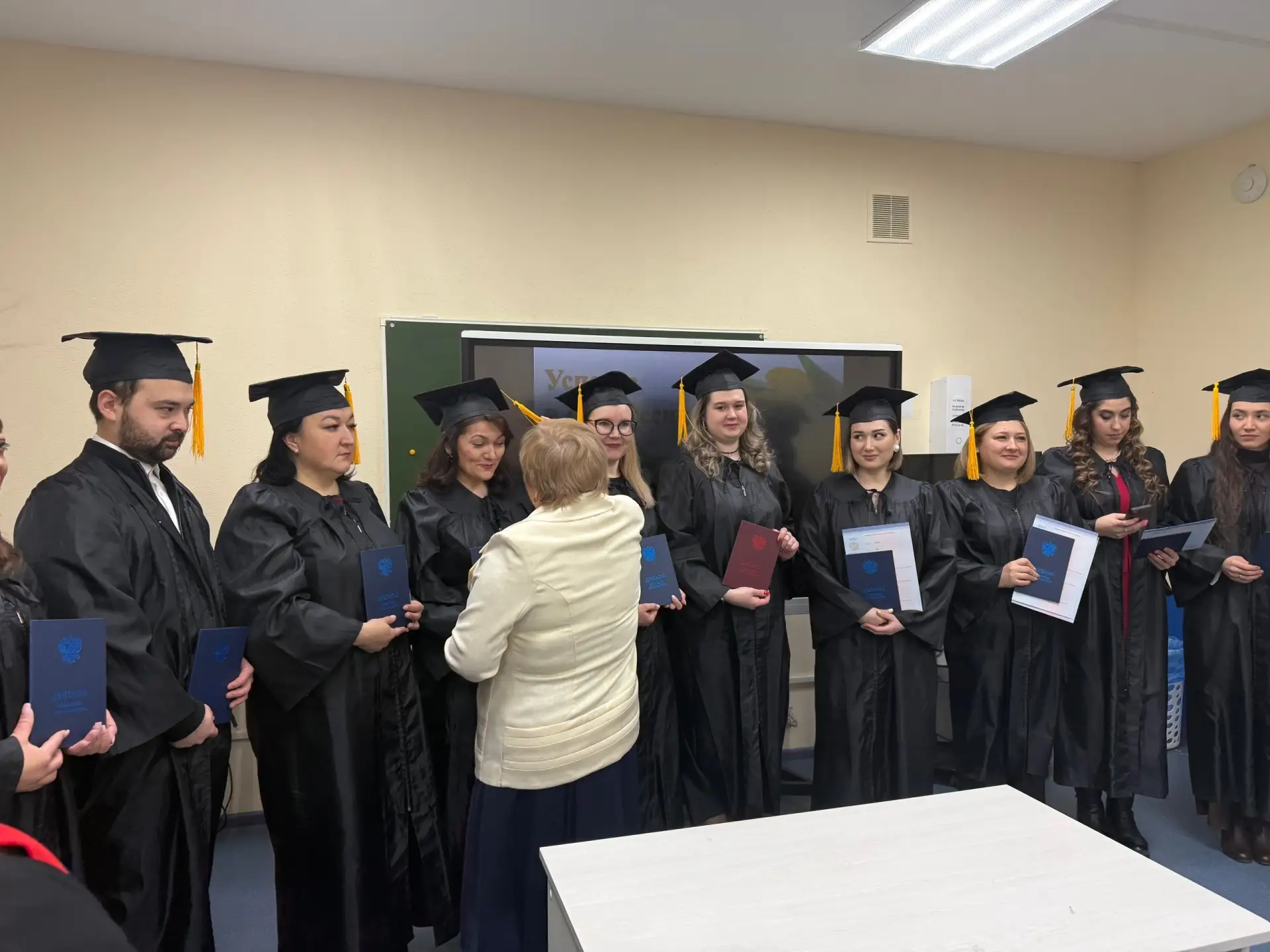 20 февраля 2026 года на кафедре теорий и методик начального образования были торжественно вручены дипломы выпускникам магистратуры, обучавшимся по направлению 44.04.01 Педагогическое образование, профиль «Управление персоналом в образовательной организации». Магистрантов поздравили с получением диплома и пожелали карьерного роста и успехов в дальнейшей работе преподаватели кафедры: руководитель образовательной программы д.п.н., профессор В.М. Янгирова, и. о. зав. каф. ТиМНО, к.ф.н., доцент Ю.А. Жукова, зам. заведующего кафедрой, к.п.н., доцент Н.Н. Сандалова.