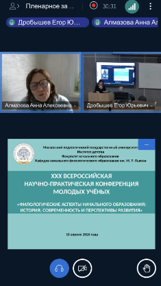 18 апреля 2026 г. студентка 2 курса Ксения Жилина, обучающаяся по направлению 44.03.01 Педагогическое образование, профиль «Начальное образование», представляла Институт педагогики и кафедру теорий и методик начального образования на ХХХ Всероссийской научно-практической конференции молодых учёных «Филологические аспекты начального образования: история, современность и перспективы развития», которую проводил Московский педагогический государственный университет.