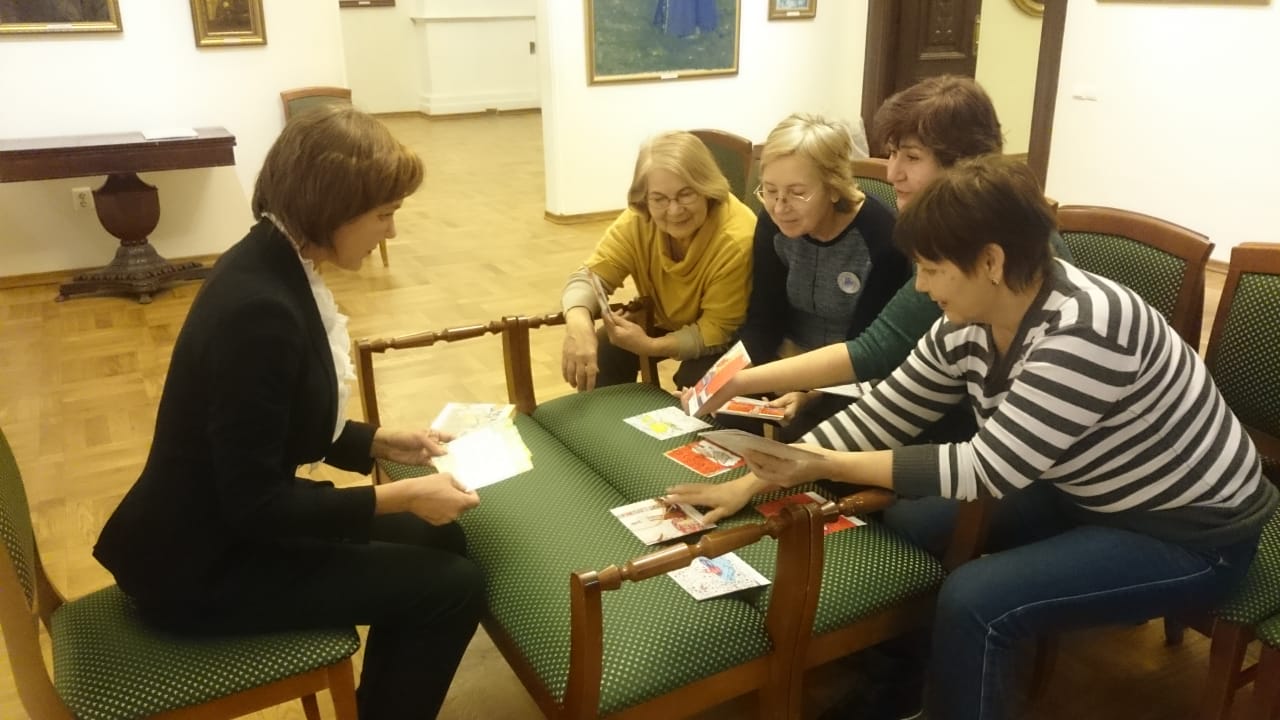 24 ноября 2018 года руководитель проекта, к.п.н., доцент кафедры ТиМНО БГПУ им. М. Акмуллы Екатерина Савельева организовала  экскурсию по музею им. М. В. Нестерова и провела обучение волонтеров "серебряного возраста" методике проведения игр-лото  - арт-лото "Истоки коллекции БГХМ им. М.В Нестерова" (авторы-составители Екатерина Савельева и Валентина Сорокина) и арт-лото "Живопись Адии Ситдиковой: башкирские мотивы, рожденные кистью" (авторы-составители Екатерина Савельева,  Валентина Сорокина, Клара Аглиуллина) в  БГХМ им. М.В. Нестерова. К команде волонтеров (Самсура Гордеева, Светлана Ермакова, Ирина Зиннатуллина,  Зинфера Гиззатуллина) во время обучения присоединились еще два посетители музея (Светлана Рушанова, Рима Хамидуллина), выразившие желание стать частью команды серебряных волонтеров и распространять лото по библиотекам. Команда проекта познакомилась с правилами проведения лото и  провела игру.