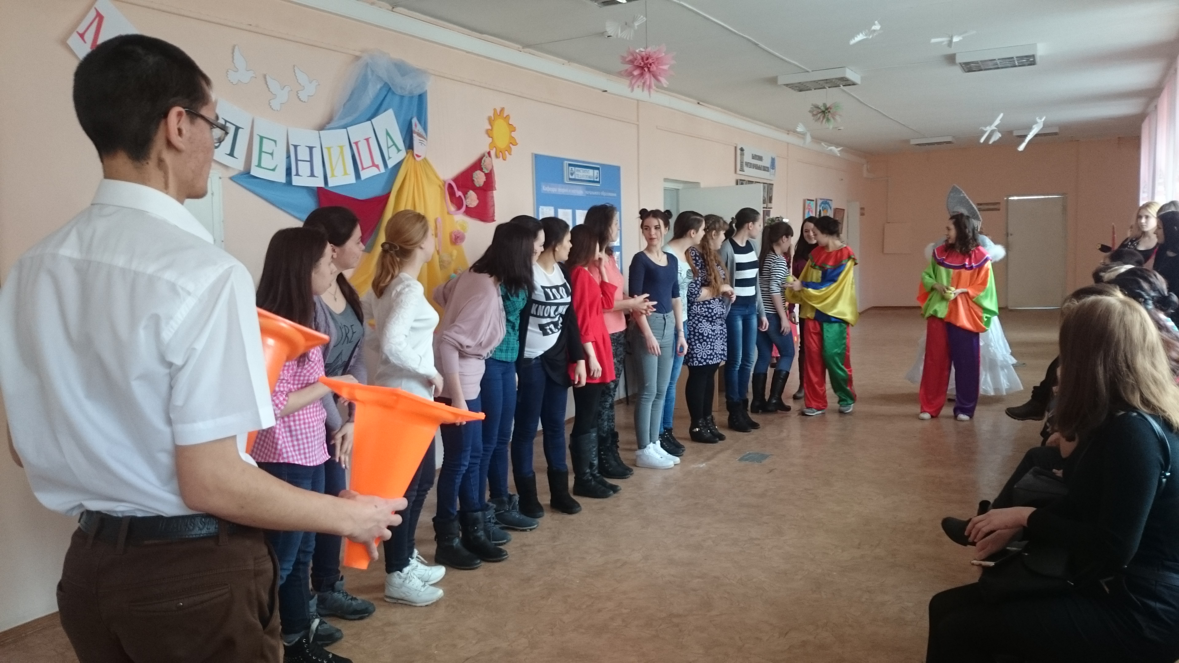 Регина Хайруллина: Масленица - очень веселый праздник! Он наполнил яркими красками, радостными эмоциями весь четвертый этаж Института педагогики! Я с удовольствие приняла участие в постановке этого веселого праздника в качестве скомороха! Мы украсили стену образом девушки Масленицы и поставили небольшую сценку, посвященную приходу весны! Во время нашего выступления было очень много желающих участвовать в конкурсах и получать призы! После выступления все гости и участники смогли полакомиться вкусными блинами, которые подготовили студенты, обучающиеся в Институте педагогики!