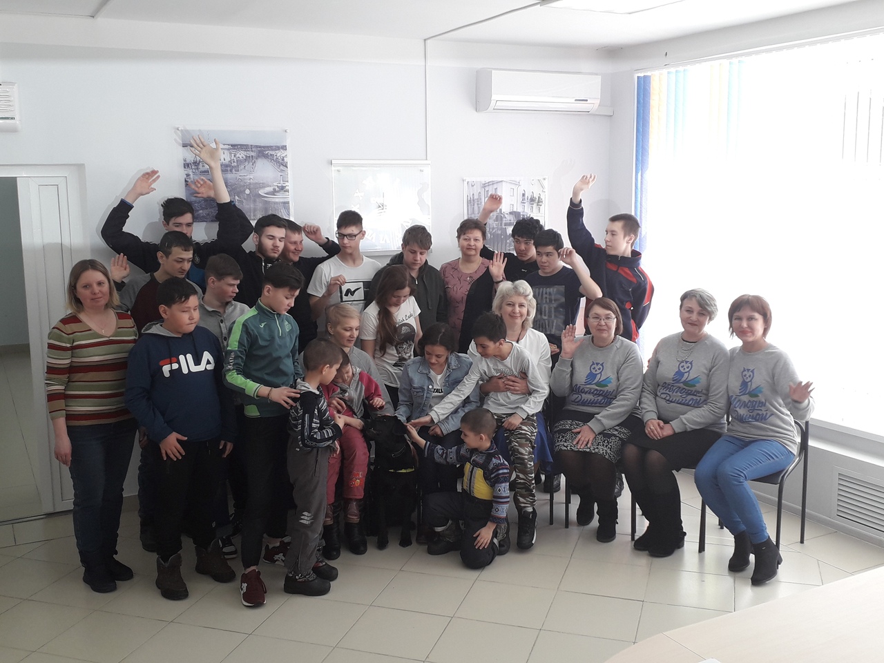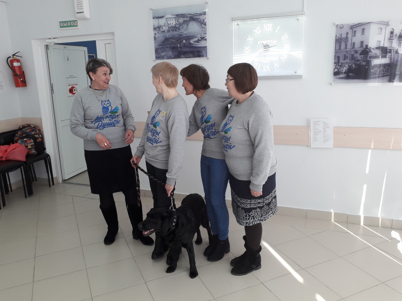 Волонтеры провели для библиотекарей и методистов обучающий семинар по методике ведения игр-лото серии «Портрет Башкортостана», затем провели игры для детей – юных читателей библиотеки. Гузель Хасанова рассказала об особенности жизни и восприятия людей с нарушениями зрения, рассказала о собаках-поводырях. Участники мероприятия активно играли в лото, угадывали национальные блюда на вкус и запах. По окончанию игр Гузель Хасанова показала увлекательный номер, в котором Андора, её собака-поводырь, участвовала в приготовлении завтрака, также  Андора, под руководством Гузель, собрала профессиональные принадлежности художника – кисточки, палитру, стаканчик для воды и выбрала свою «любимую» картину М.В. Нестерова.