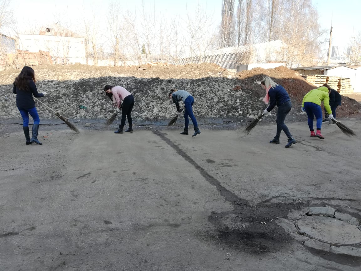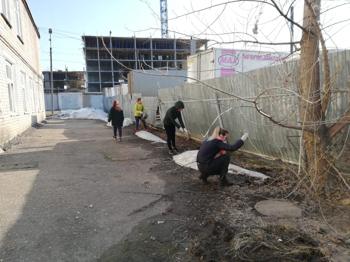 Студенты ворошили снег, проводили скол льда и наледи для скорейшего их таяния, убирали мусор на территориях, где снег уже сошел, приводили в порядок клумбы.